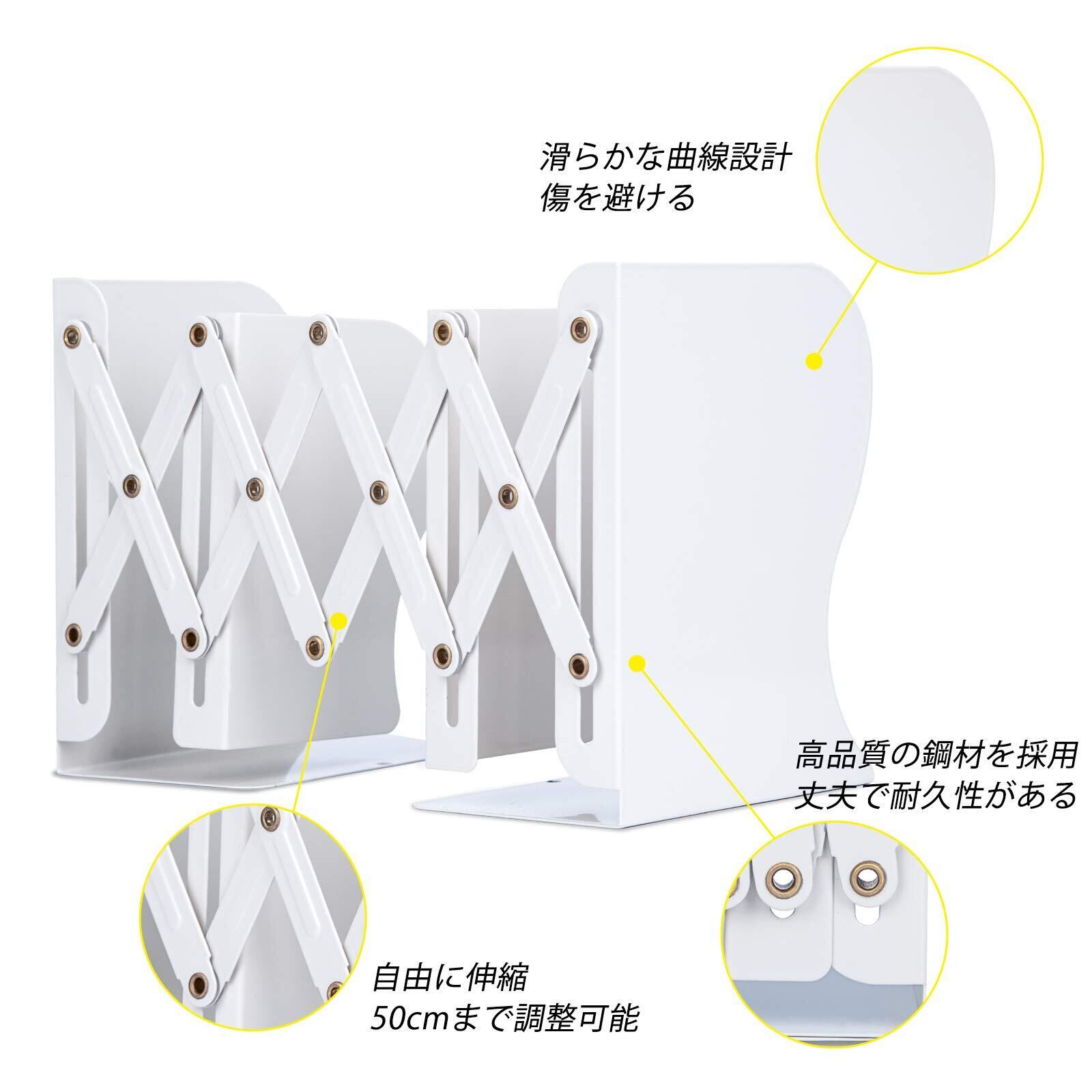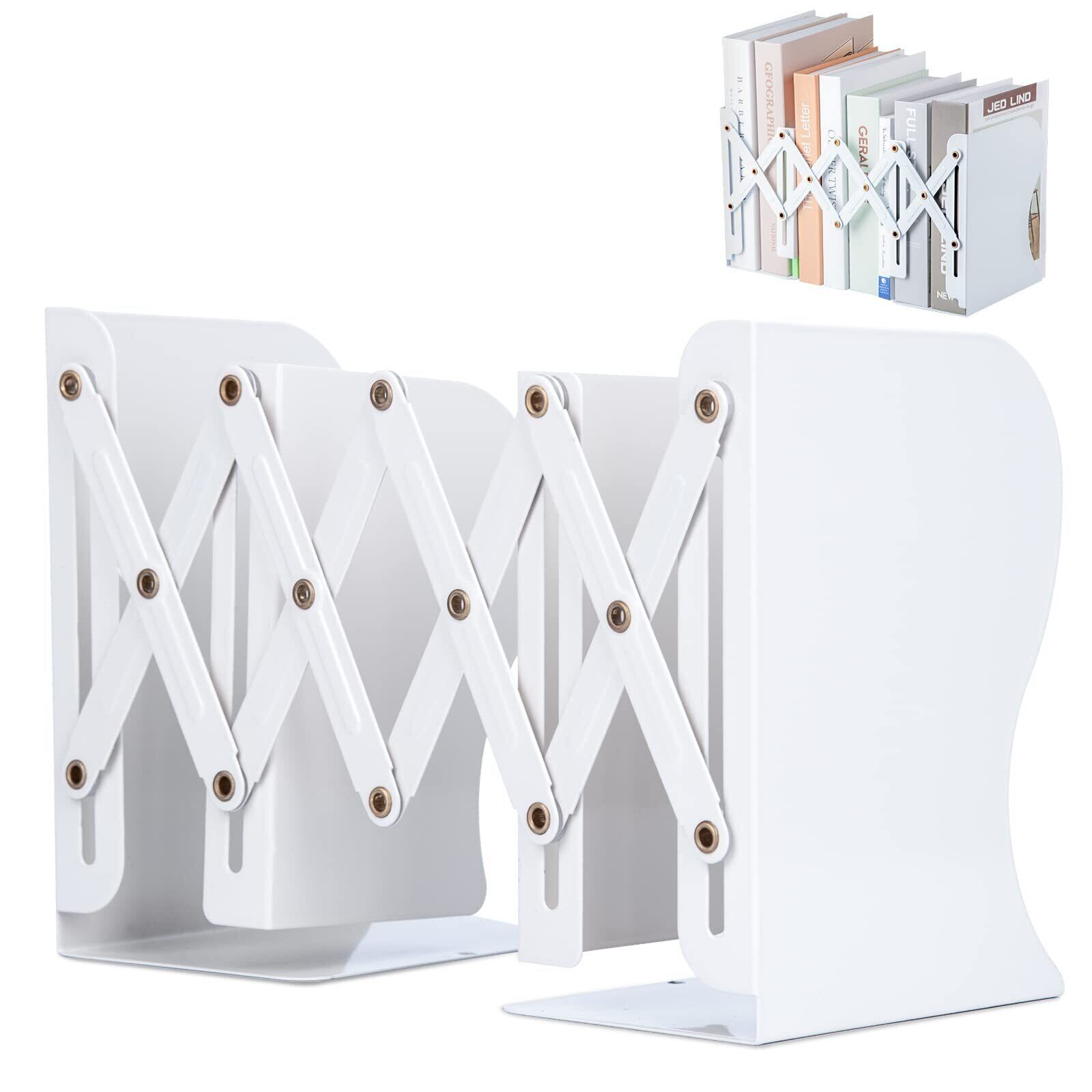 【人気商品】ALIOBC 本立て 伸縮自在 ブックエンド 倒れない 金属製 卓上本棚 仕切りスタンド 雑誌 書類 新聞ファイル ひきこみ式の棚 事務用品 文房具 学習 書斎 子供部屋 オフィス 多機能 おしゃれ ホワイト | gsmshop