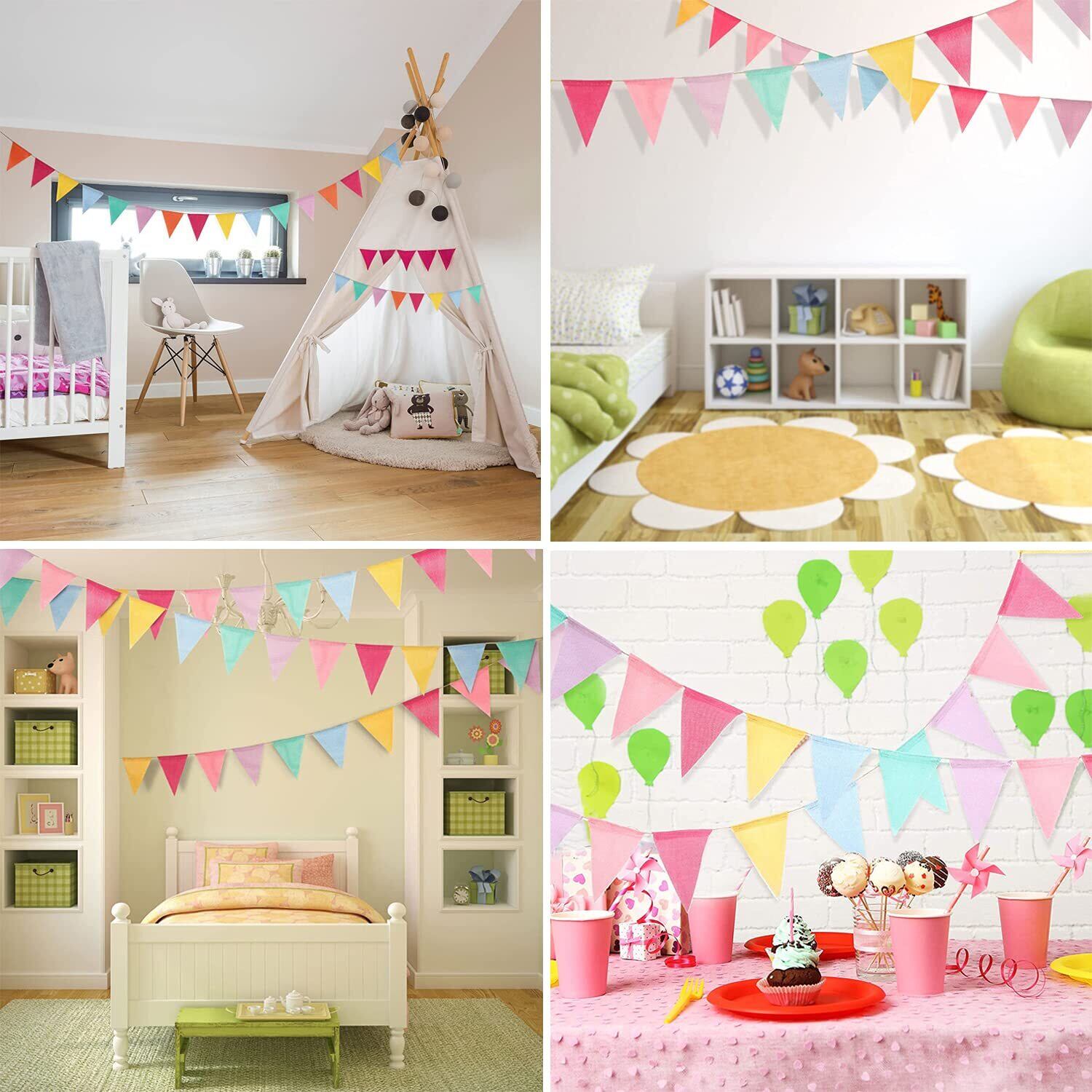【6さまざまな色のフラグ】青、黄、赤、ピンク、紫、緑、多色のペナントバナーは、パーティーに楽しい雰囲気を作り出すことができます。