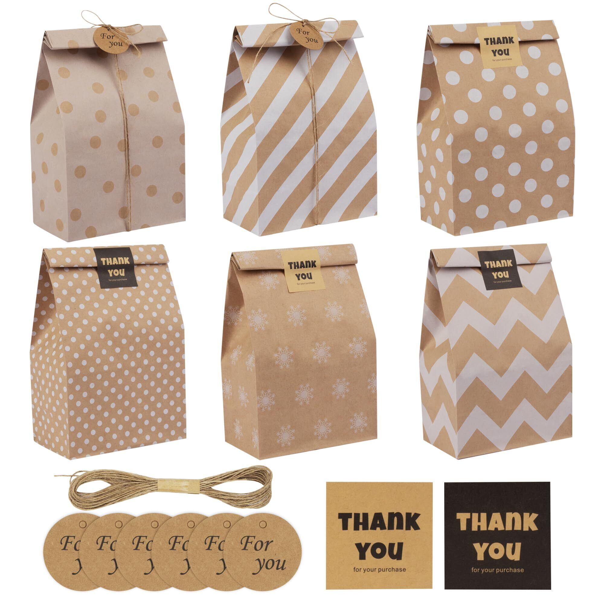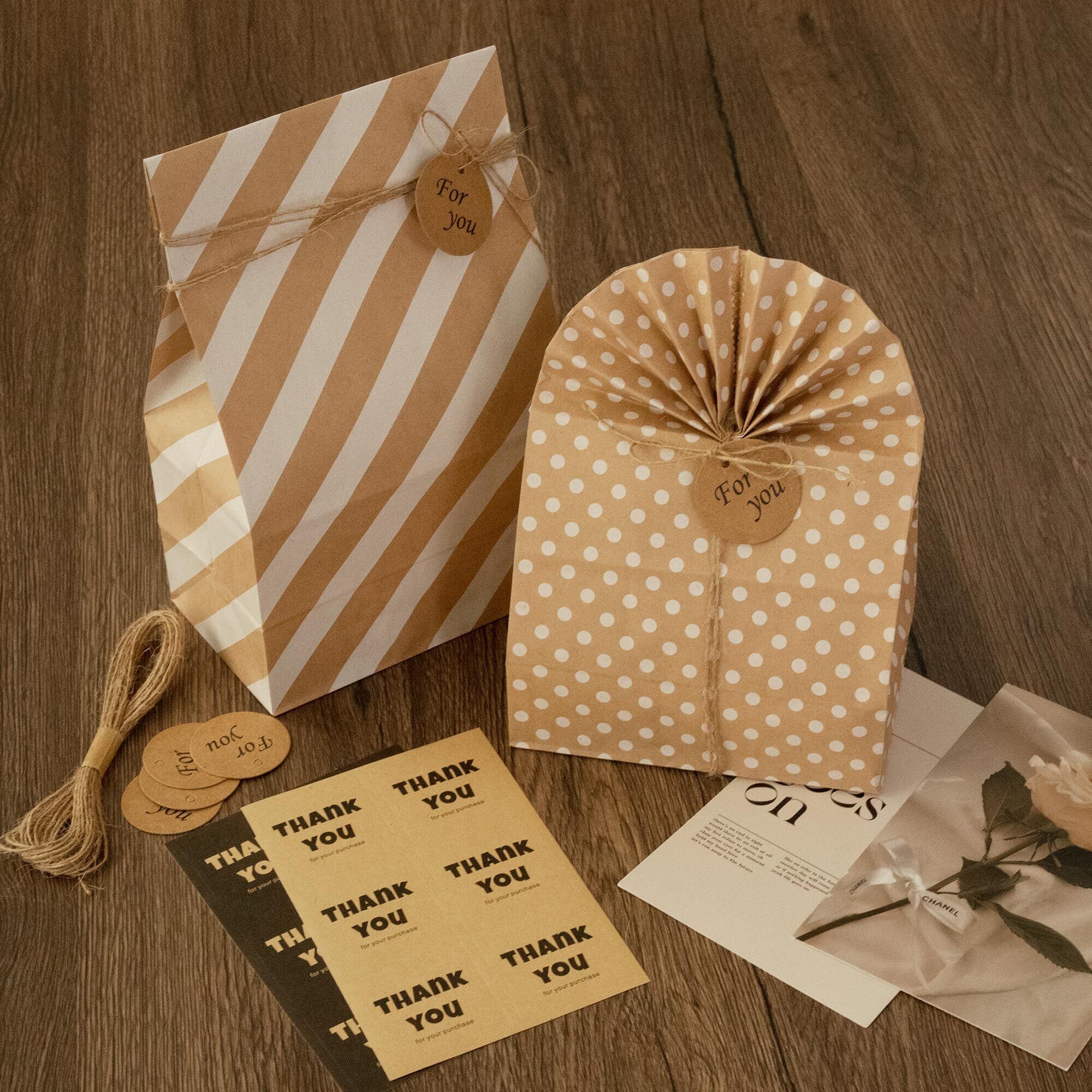 【2022最新】[TEMLUM] ラッピング袋 紙袋 24枚セット ギフトバッグ 紙バッグ 包む シール付き タグ付き 小サイズ 平袋 シンプル 厚手 おしゃれ 可愛い 包装 リサイクル可能 誕生日 結婚式 収納 | gsmshop