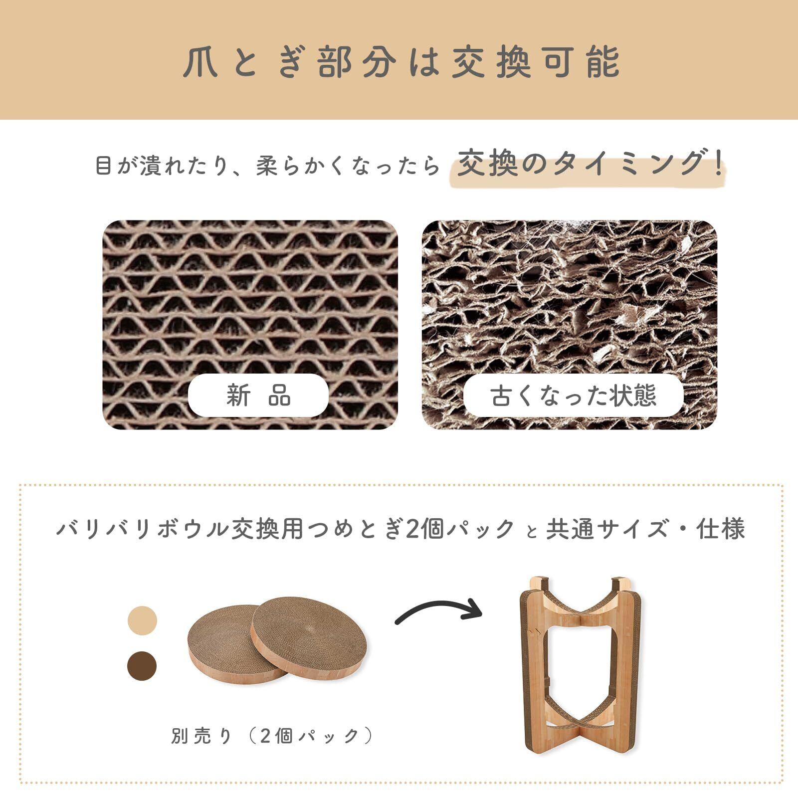 猫壱 バリバリボウルタワー交換用つめとぎ 2個パック ライトブラウン