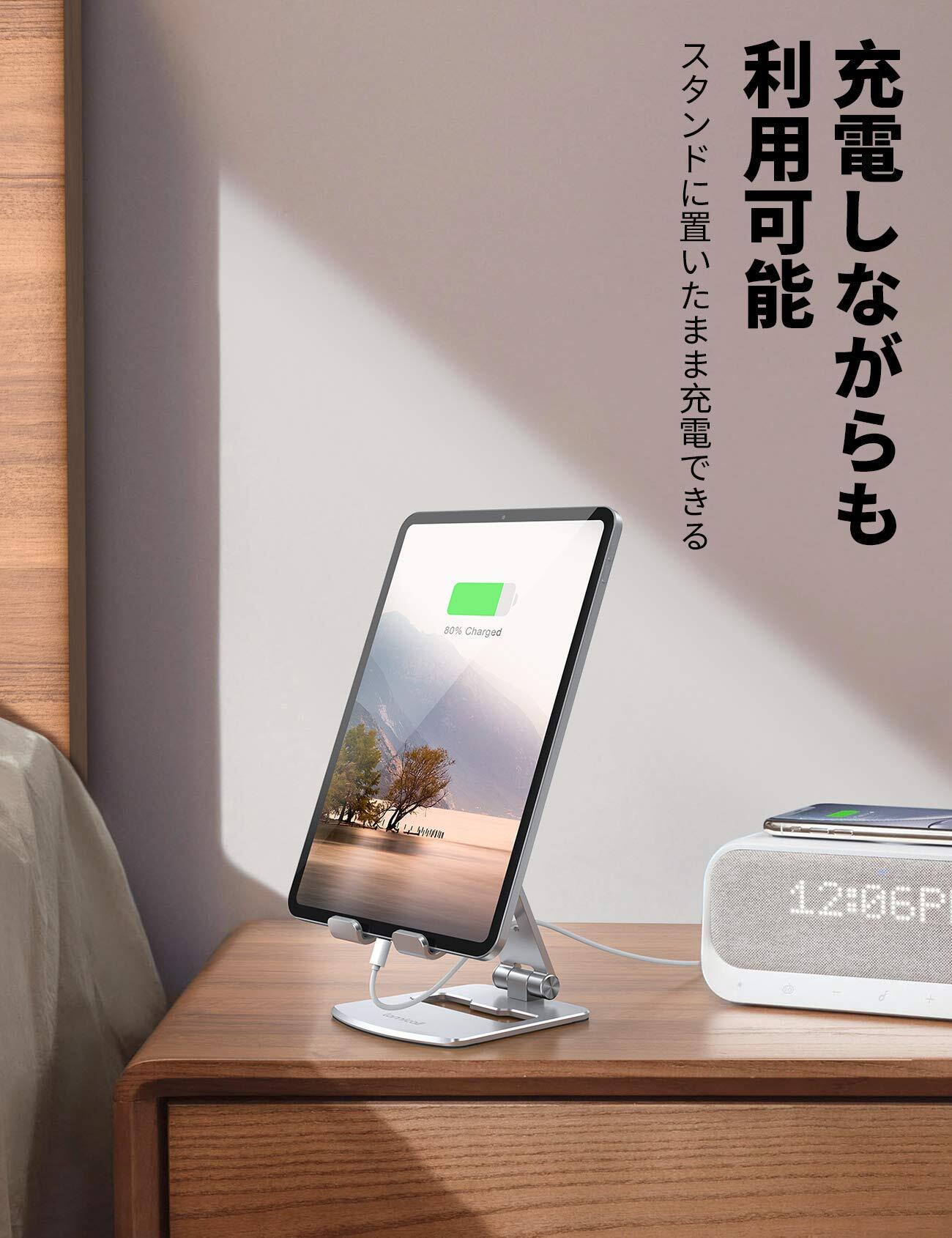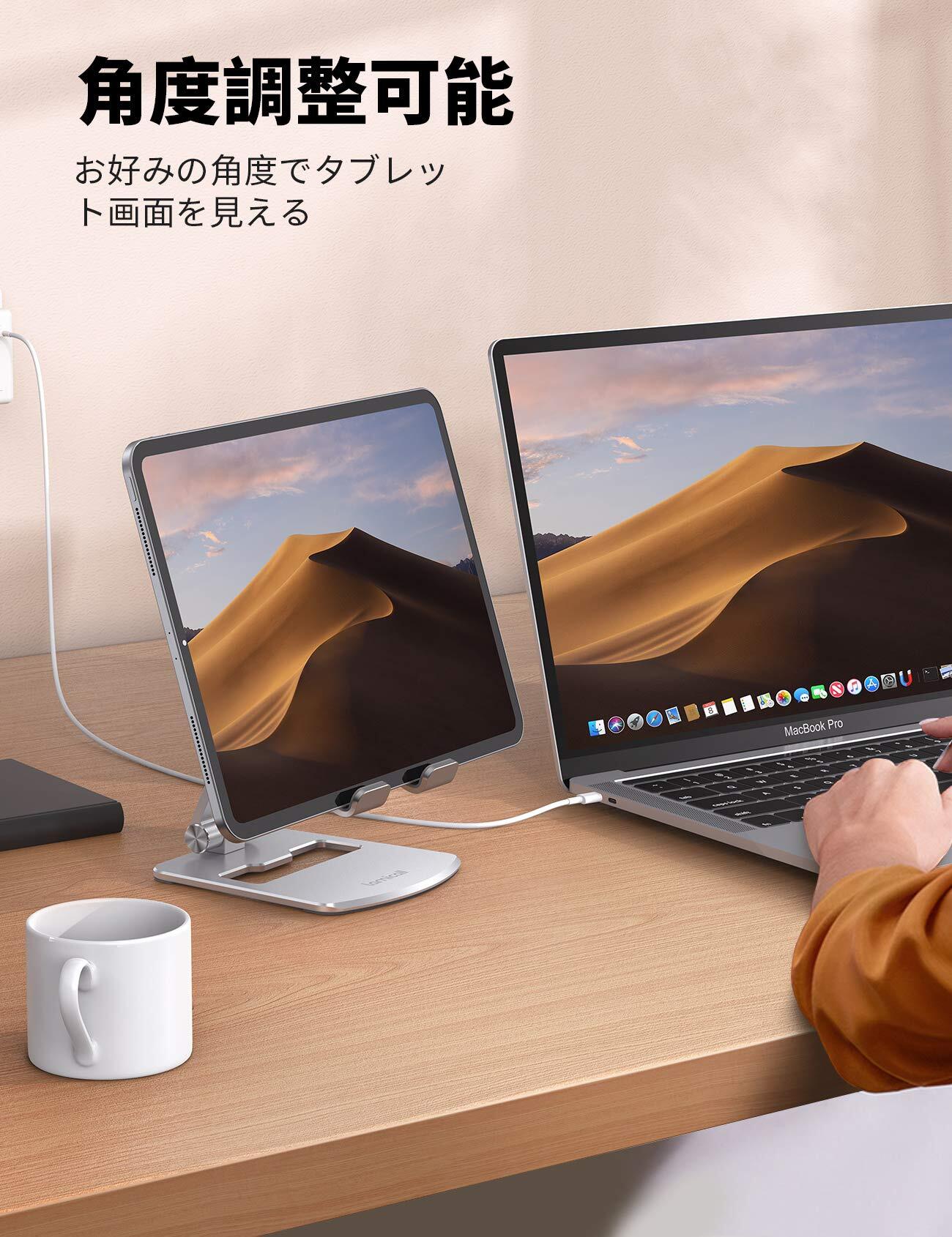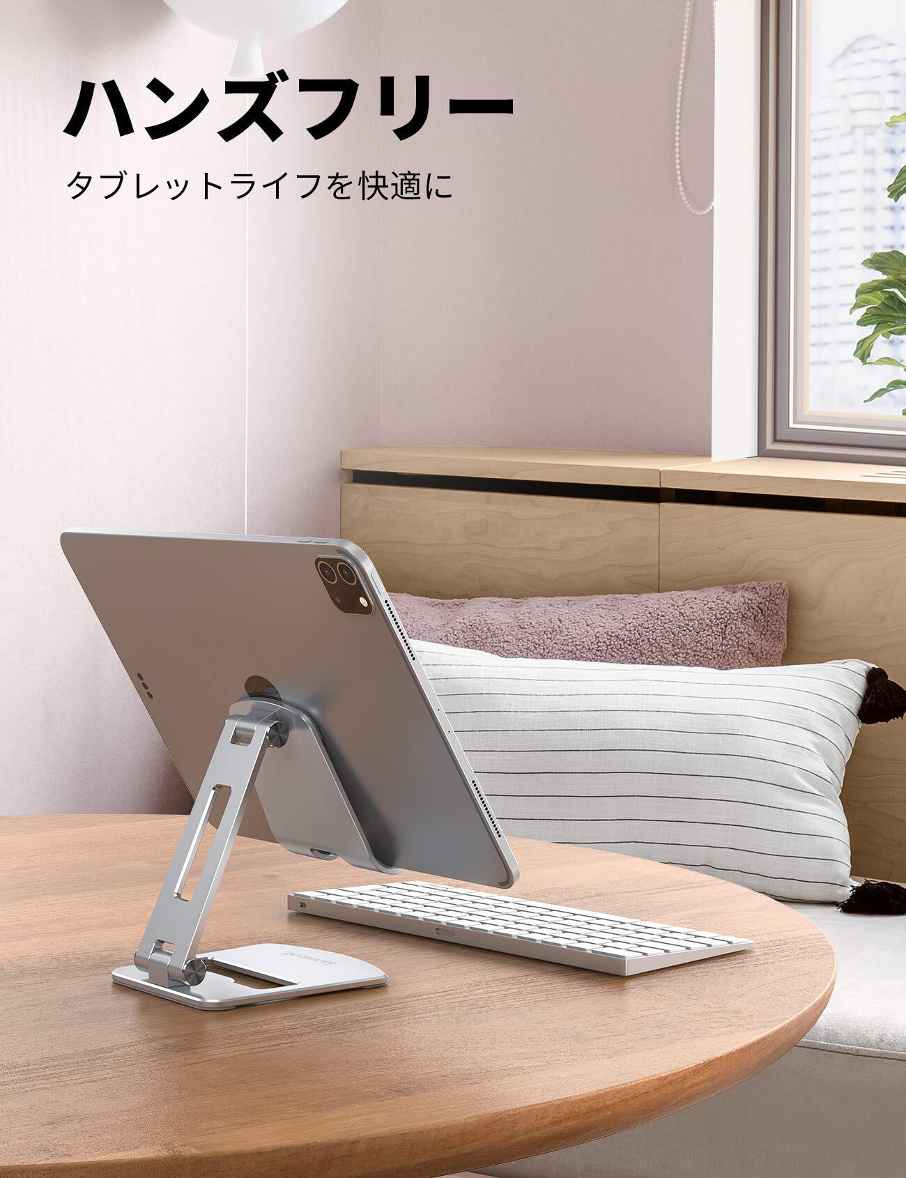 折り畳み式 タブレット スマホ 兼用 スタンド ホルダー 角度調整 Lomicall iPad用 stand : アルミ 合金製 卓上 縦 横置き すたんど タブレット 置き台 YouTube 動画 テーブル デスク 持ち運び 4~13 インチ ipad 10 第十世代 ipad pro mini Air android huawei Galaxy に対応 - シルバー