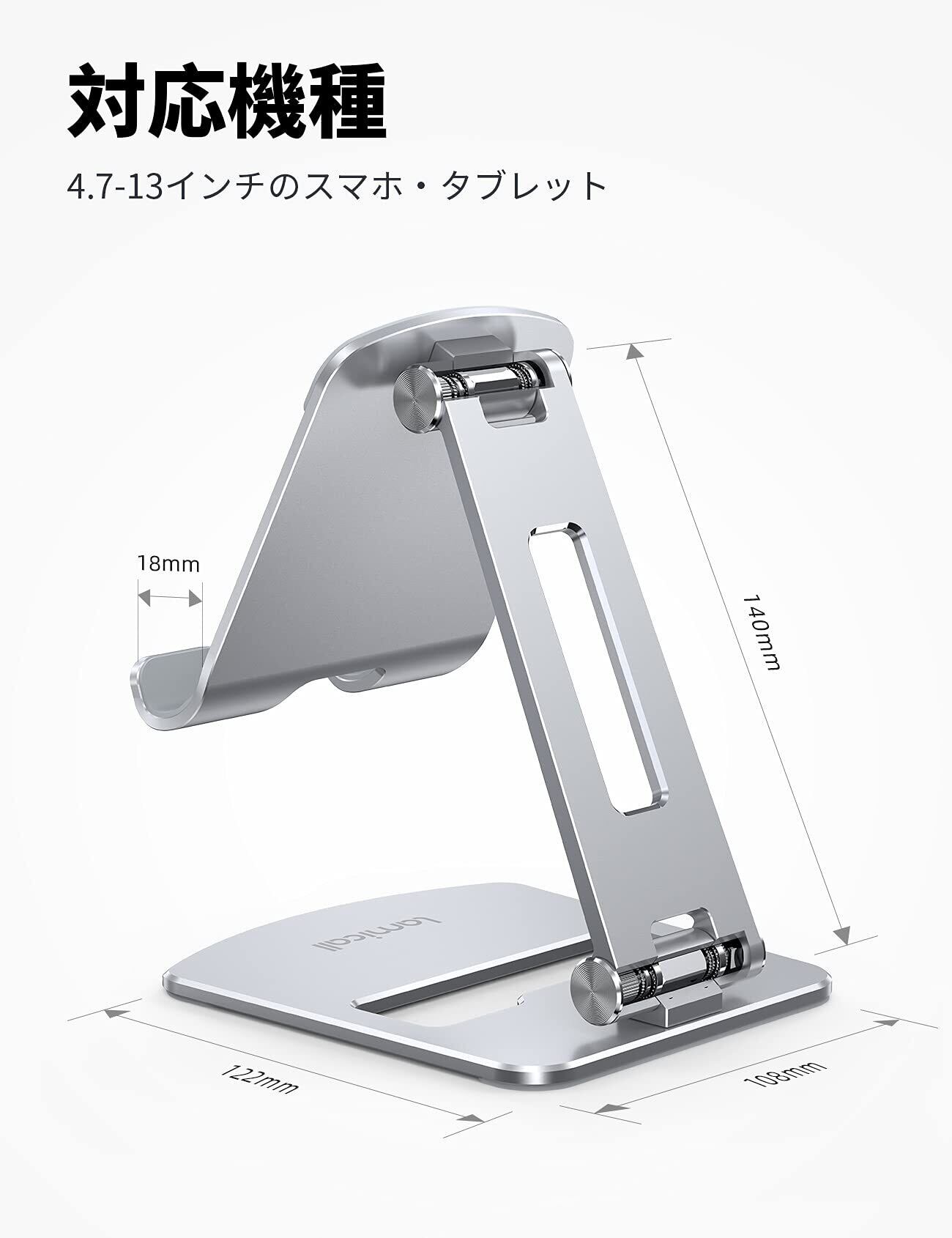 【新着商品】折り畳み式 タブレット スマホ 兼用 スタンド ホルダー 角度調整 Lomicall iPad用 stand : アルミ 合金製 卓上 縦 横置き すたんど タブレット 置き台 YouTube 動画 テーブル デスク 持ち運び 4~13 インチ ipad 10 第十世代 ipad pro mini Air android huawei Galaxy に対応 - シルバー | gsmshop