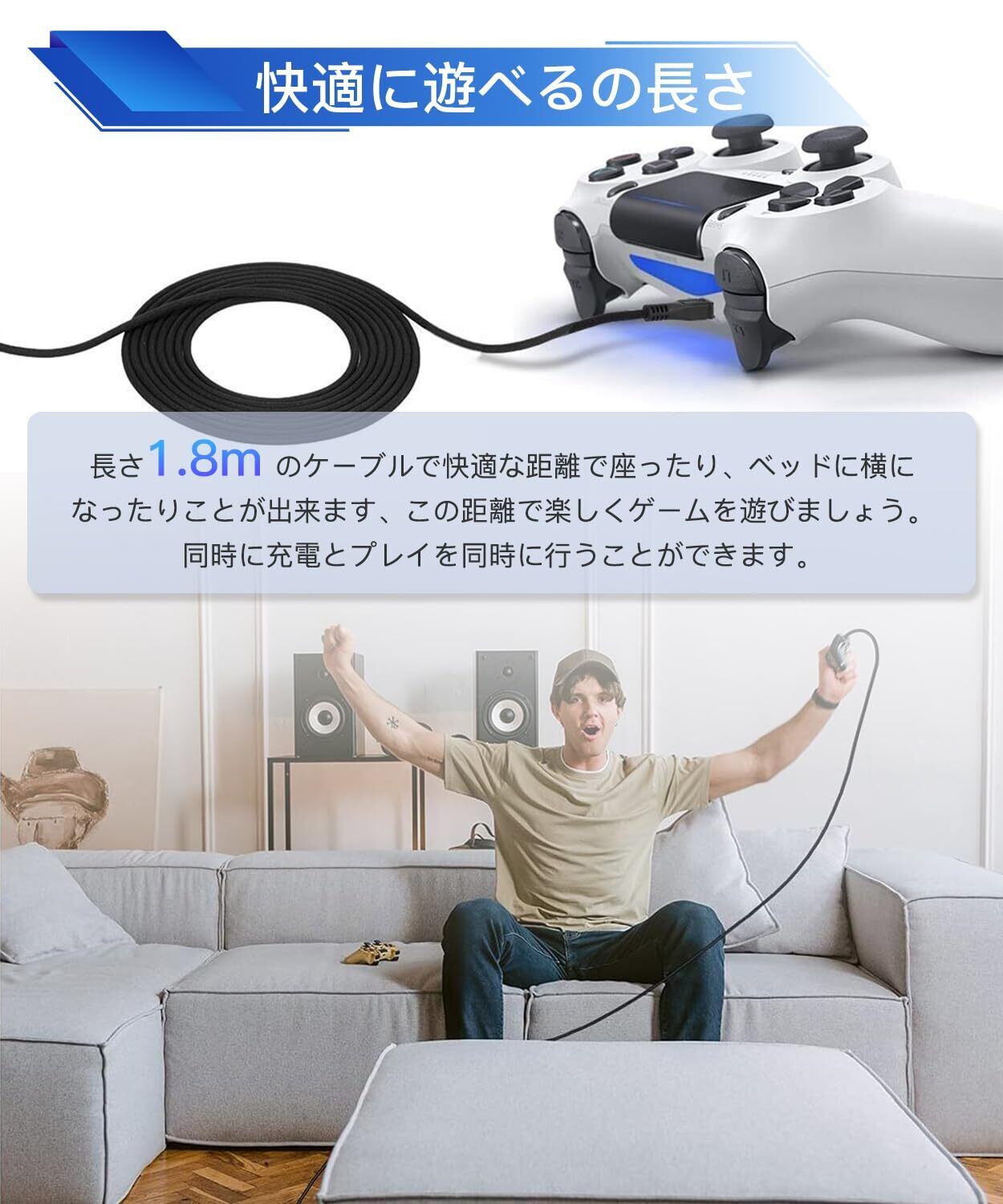 PS4 コントローラー 用 充電 ケーブル 1.8M micro USB 充電 データケーブル 急速充電 高速データ転送 各種 Xbox One/PlayStation4 slim/PS4 Pro等その他機器対応