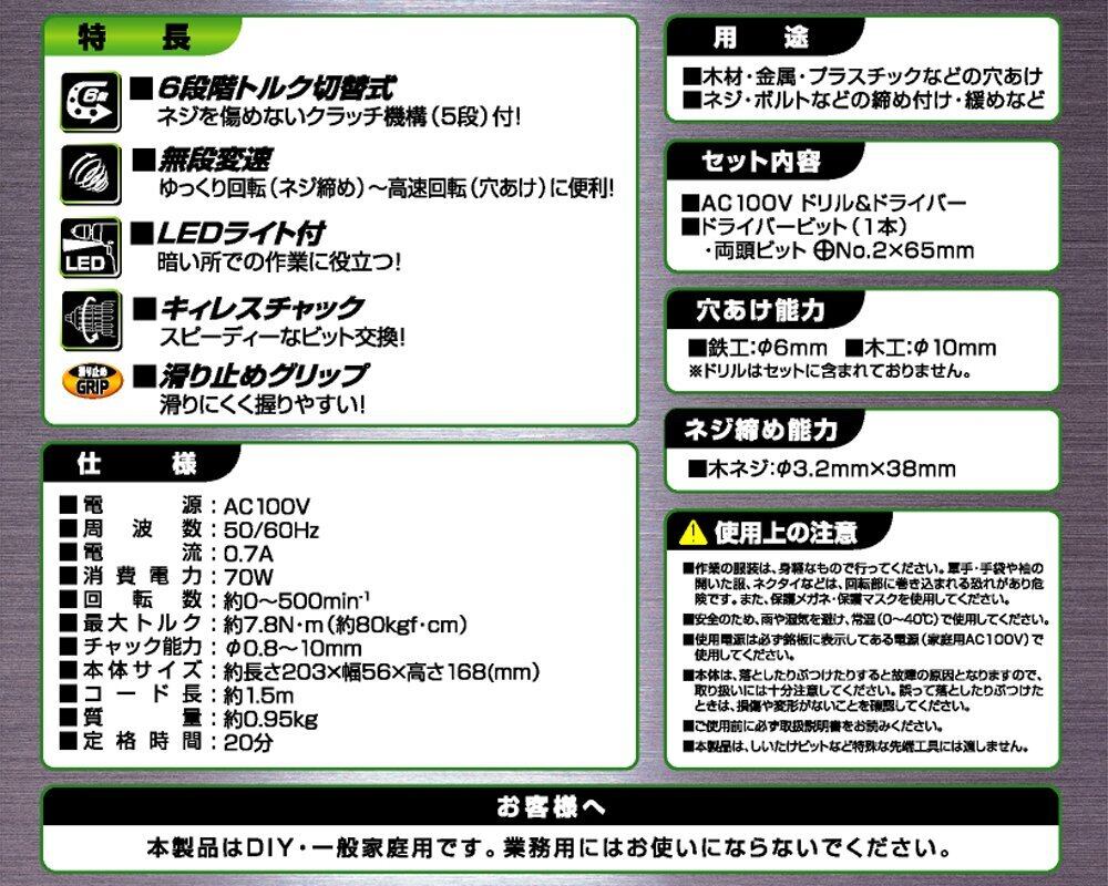●ネジ・ボルトの締め付け、木材等の穴あけに!