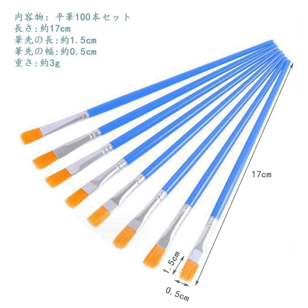 平筆100本セットがお届けされます。長さ約17cmで、筆先の長さは約1.5cm、幅は約0.5cmです。