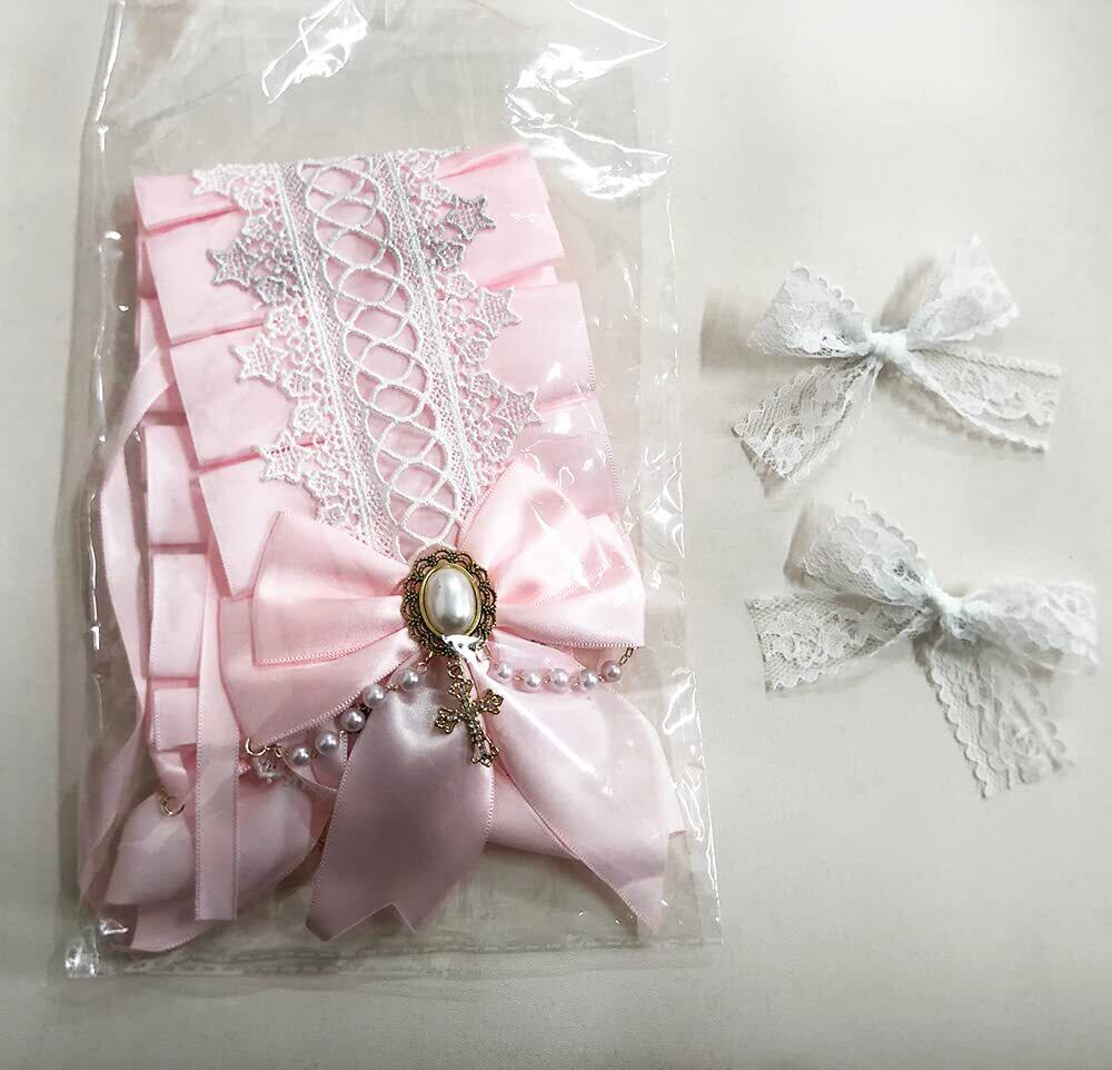 ✟ セット内容:ゴスロリ 髪飾り*1、 白い蝶結びヘアクリップ*2。