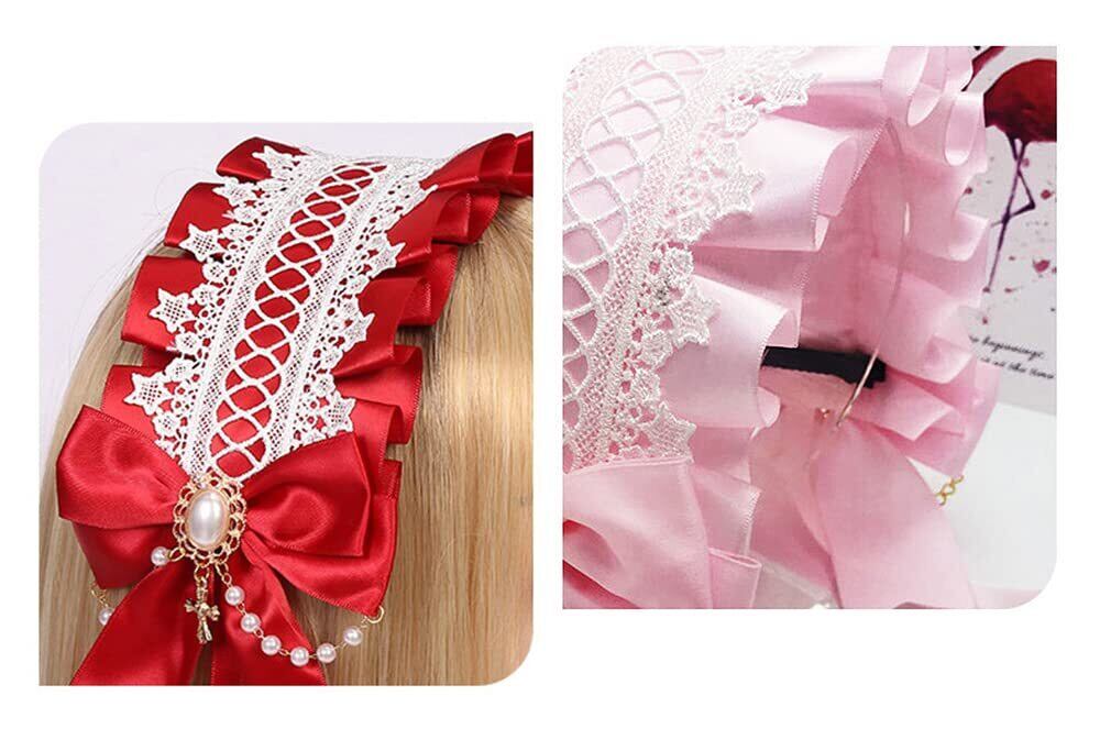 【在庫処分】サムコス ロリータ リボン チャーム ロリータ ヘッドドレス ロリータ 髪飾り カチューシャ レース 蝶結び 萌え キュート かわいい コスプレ lolita メイドカフェ (ピンク) | gsmshop