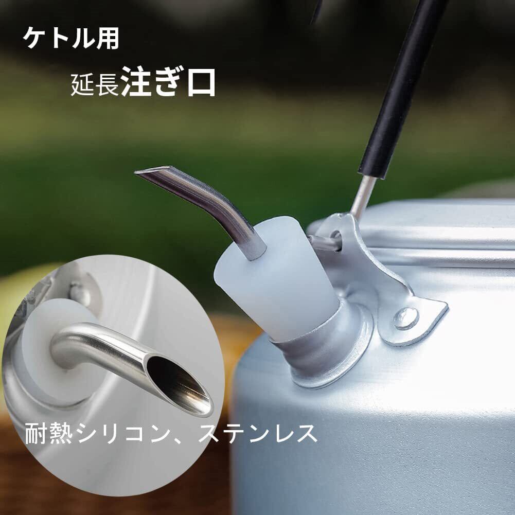 【コーヒー注ぎ口】: 取り付ける事により細いお湯を注ぐことが可能ですので美味しいドリップコーヒーを飲めます。現地で豆を引いて飲むコーヒーは格別です。ケトルにはめる部分はシリコン製で200℃の温度まで耐えることができます。