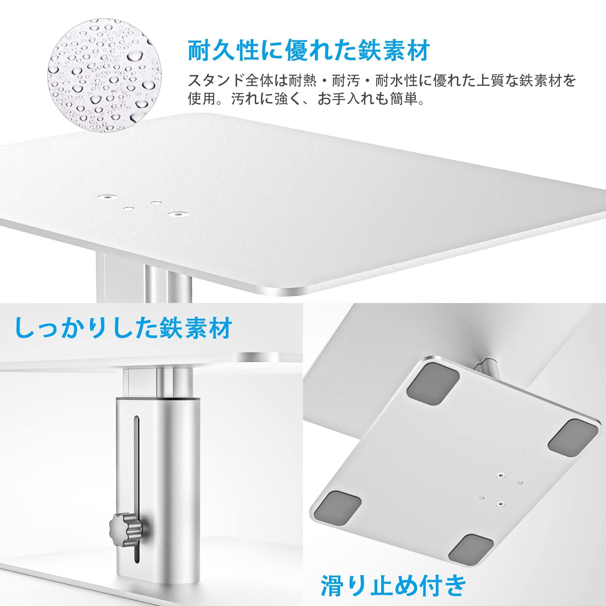 【金属製で安定感抜群】:重量:約2.8kg。モニター台の全体は高級感のありしっかりと安定感のある鉄素材を採用、耐荷重は最大15kgと頑丈な作りで、パソコンのディスプレイだけに適用することではなく、プリンタ台、テレビ台としても最適です。また、モニタースタンドの底面には、デスクが傷ついたり机上台がズレたりすることを防ぐ4つのクッションも付いて安心です。