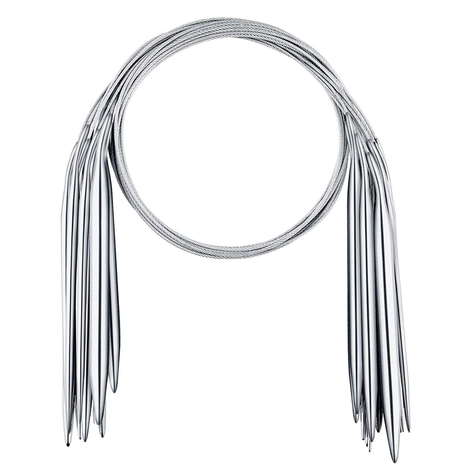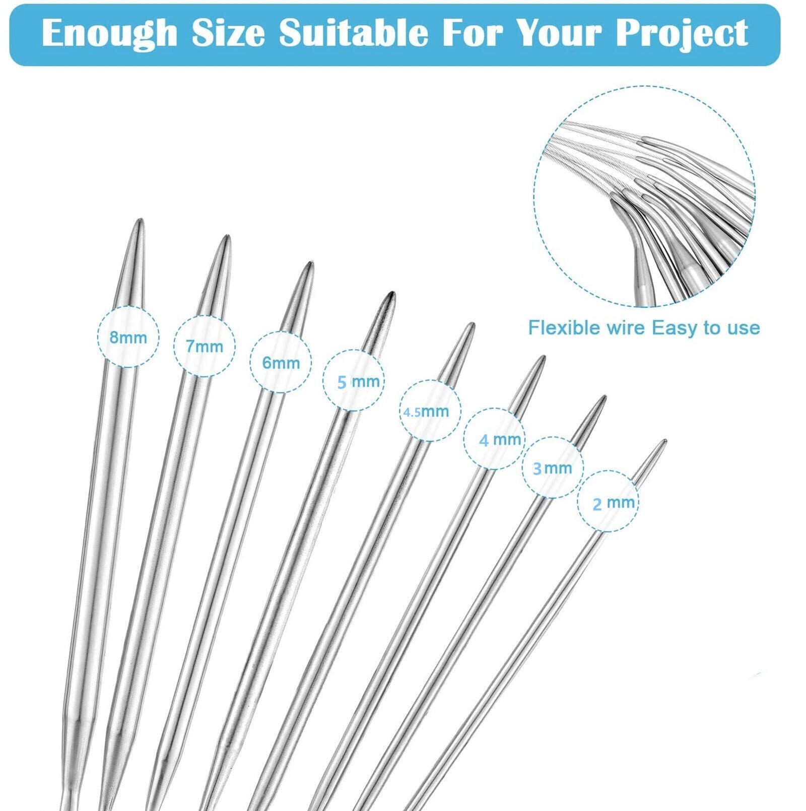 Kingsie 編み針 輪針 8サイズ 80cm 2mm-8mm ステンレス製 ミニ輪針 棒針 編み物ツール クラフト 手芸