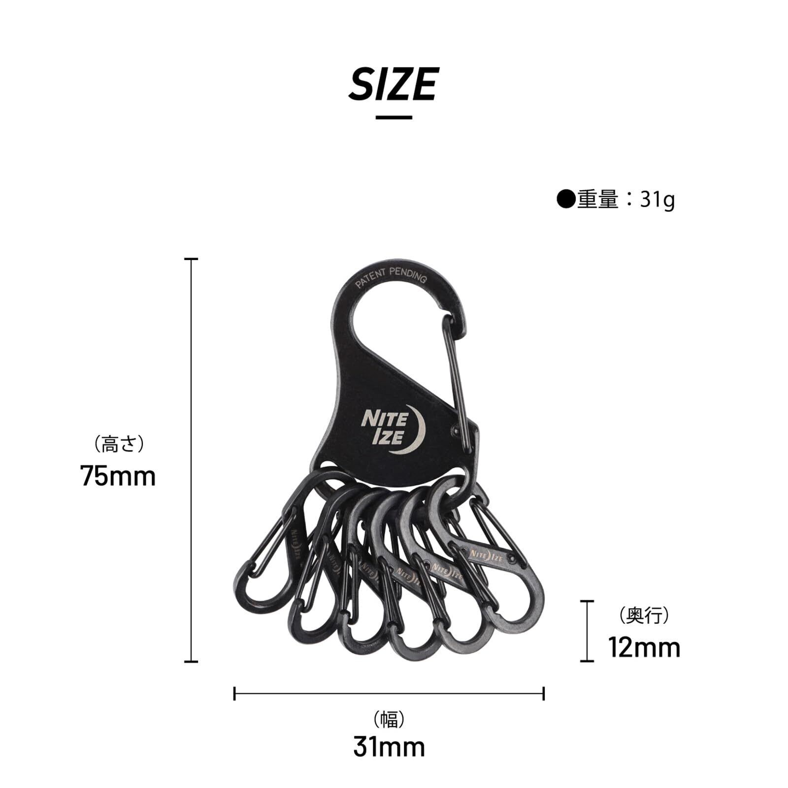 特徴:S字カラビナに最大6本までの鍵や小物などを取り付け・取り外しが可能。カラビナを取り外すことで、すっきりとした印象を与えます。