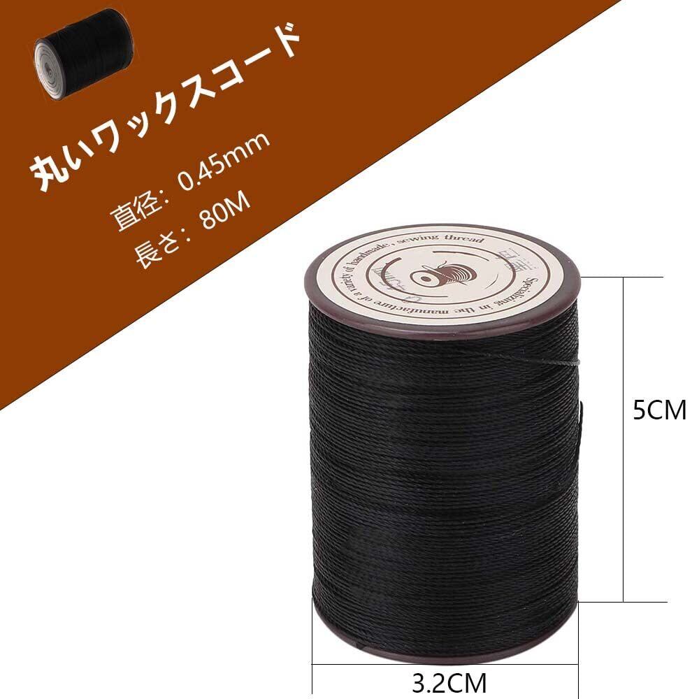 【極細0.45㎜】 ポリエステルろうびき糸、太さ0.45㎜、1㎜と2㎜菱目打ちと相性よく、通しやすく丸紐タイプでステッチも綺麗に。、レザークラフト手縫いに最適だけではなく、マクラメに活躍できます。