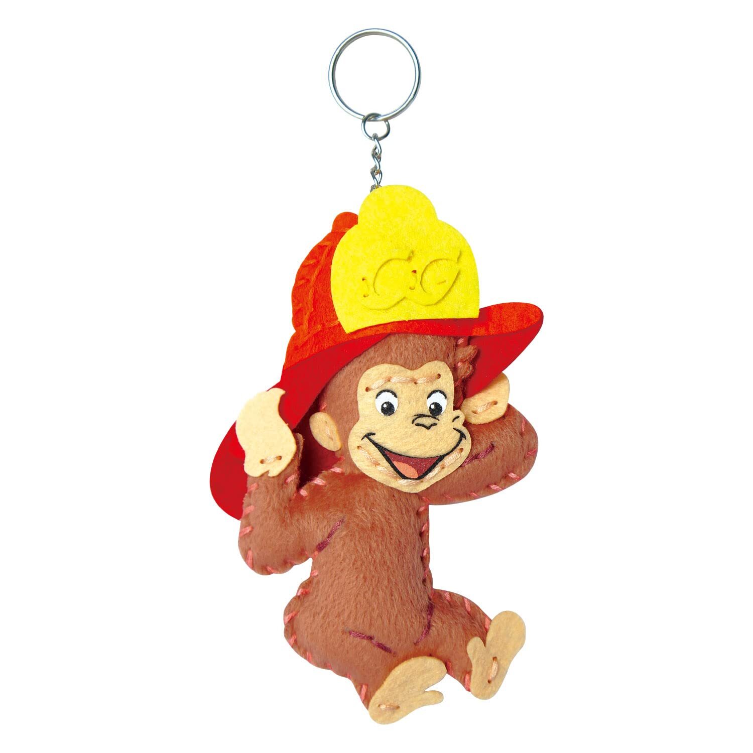 おさるのジョージ の キャラクター マスコット が作れる ソーイング キット ! 付属の プラスチック 針 と 糸 を使って、順番通りに 布 を縫い合わせて最後に 綿 を詰めると マスコット キーホルダー が作れます。