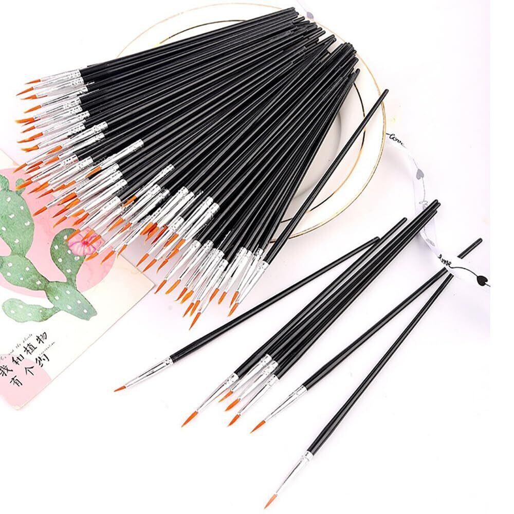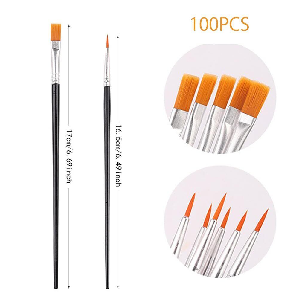 YFFSFDC 平筆 勾線筆 絵筆 100本セット 画材筆 水彩筆 プラモデル 塗装 油絵 水彩画 フィギュア 筆 (勾線筆+ 平筆(ブラック))