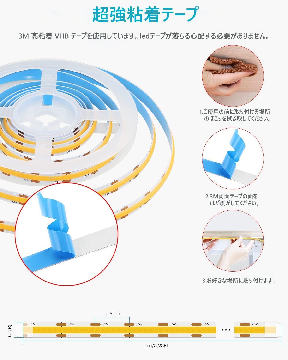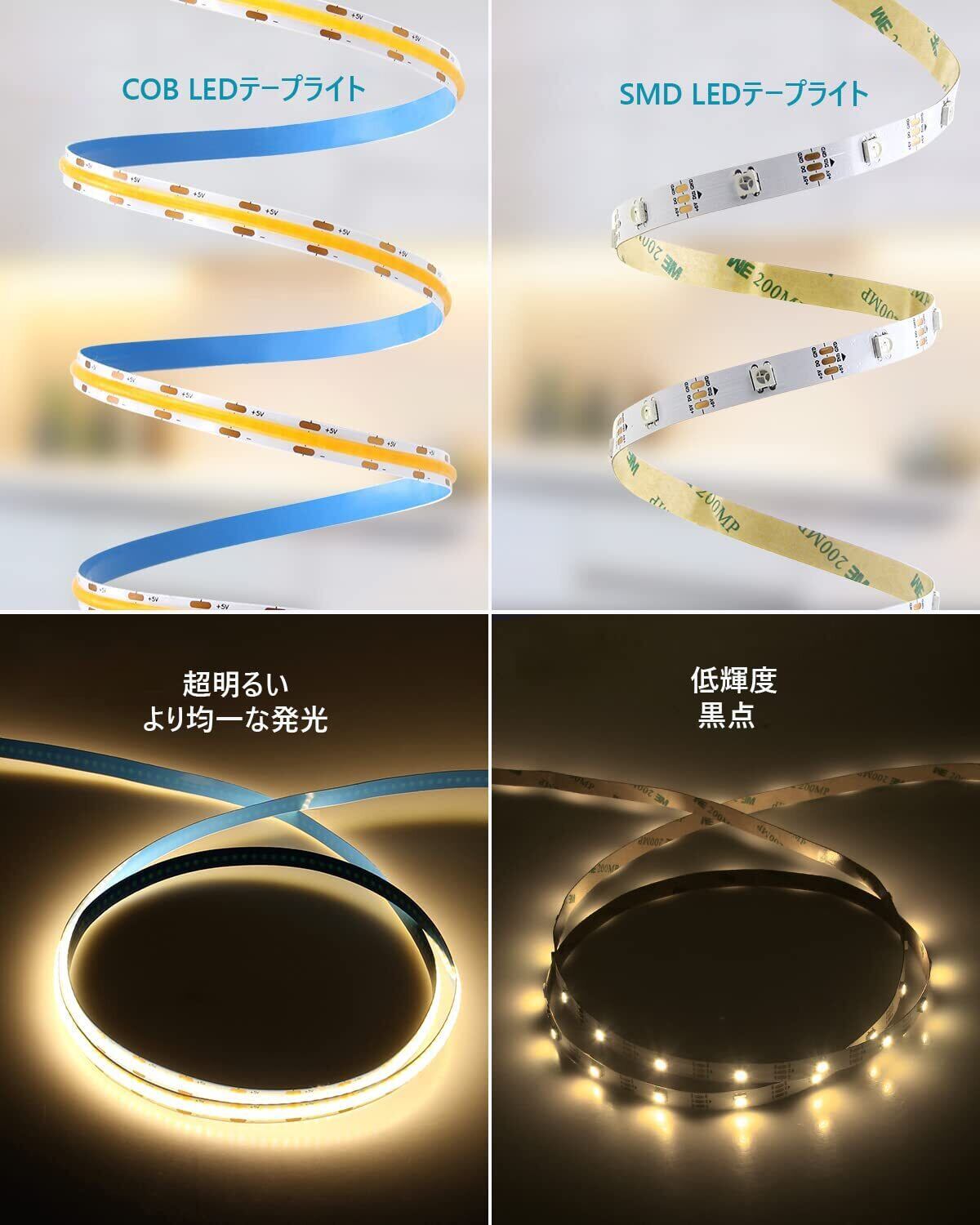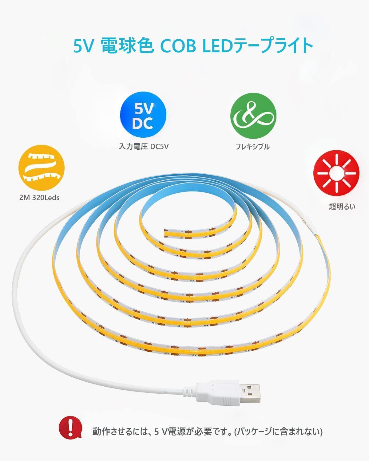 【新着商品】ALITOVE COB テープライトUSB ledテープ 5V 2M 320Leds/M 3000K電球色 フレキシブル 高密度 LEDテープライトCRI85+ FCOB COB LEDストリップライト 切断可能 取付簡単 非防水 イルミネーションライト 店舗 室内 ホーム装飾用 DIY ledライト (3000K,2M) | gsmshop