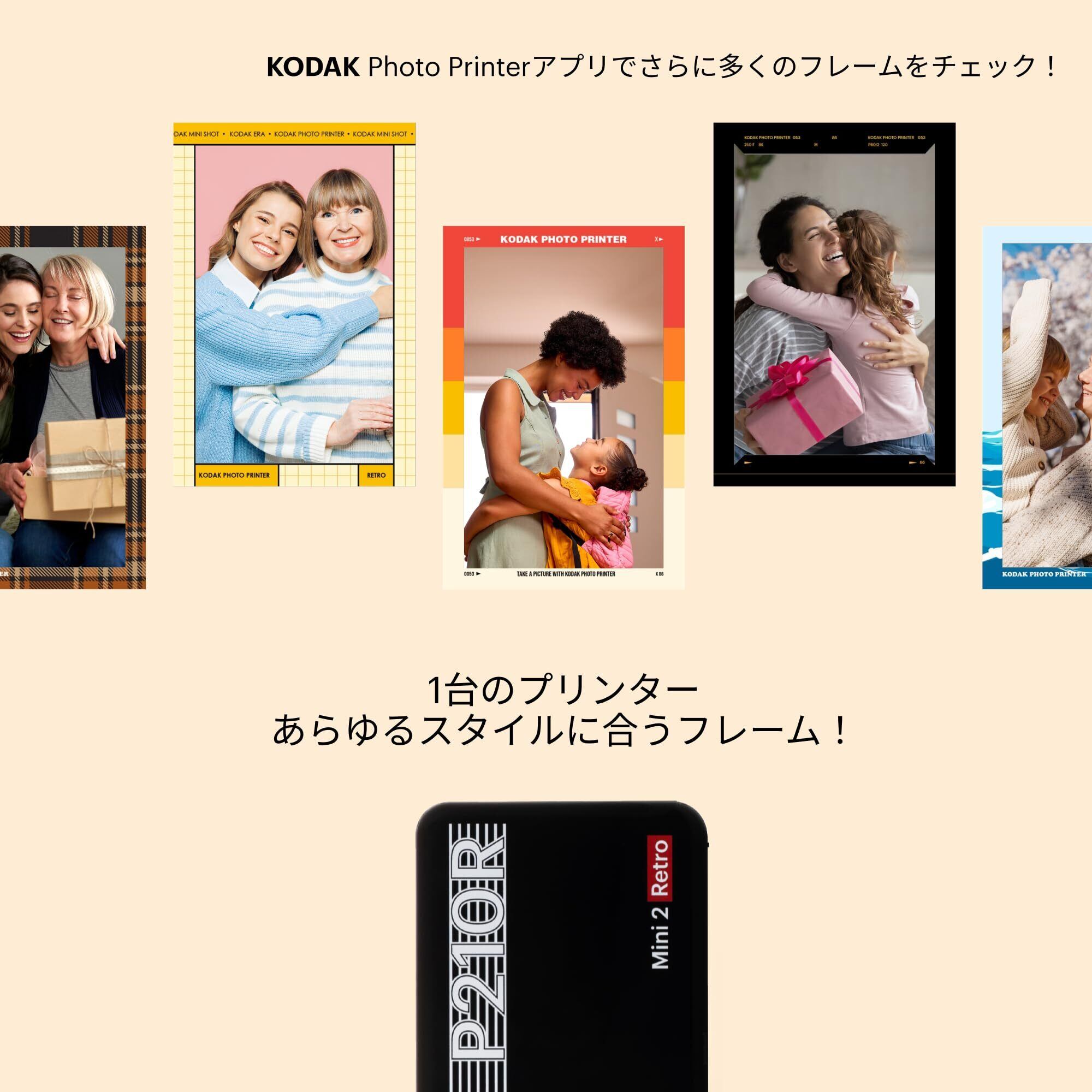 高品質の写真: KODAK Mini 2 Retroは、欠点のない写真を数秒で印刷できる4PASS技術を採用しています。 写真は色の層に印刷され、ラミネートされるので、指紋や水から保護されます。 写真は100年以上続くほどの品質です!綺麗な写真がほしい方や何よりも品質を第一にする方にお勧めのクオリティーでございます。