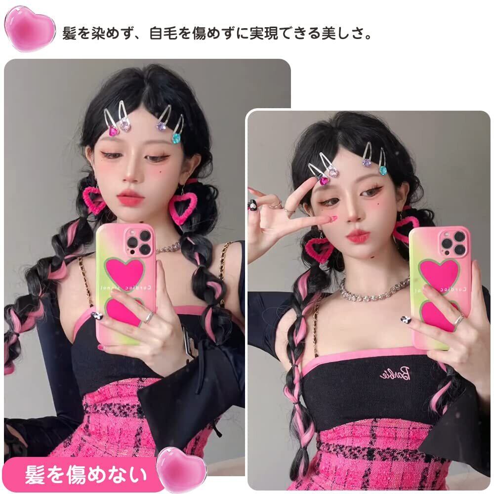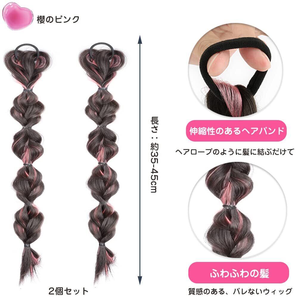 ヘアエクステ 三つ編み ウィッグ 2個セット 取り付け簡単 カラーエクステ 編み込み 髪の毛 ポニーテール 延長 ツインテール デュアルテール 自然 おしゃれ 着脱簡単 少女 レディース 発表会 イベント フェス パーティー 誕生日会 子供 大人 (櫻のピンク)