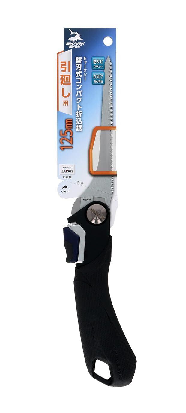 高儀(Takagi) シャークソー 替刃式 コンパクト 折込鋸 引廻し用 125mm 日本製 のこぎり ノコギリ 折込のこぎり 片刃 防サビ 永切 木材 ベニヤ 化粧合板 石膏ボード 窓抜き カラビナ 取り付け可能