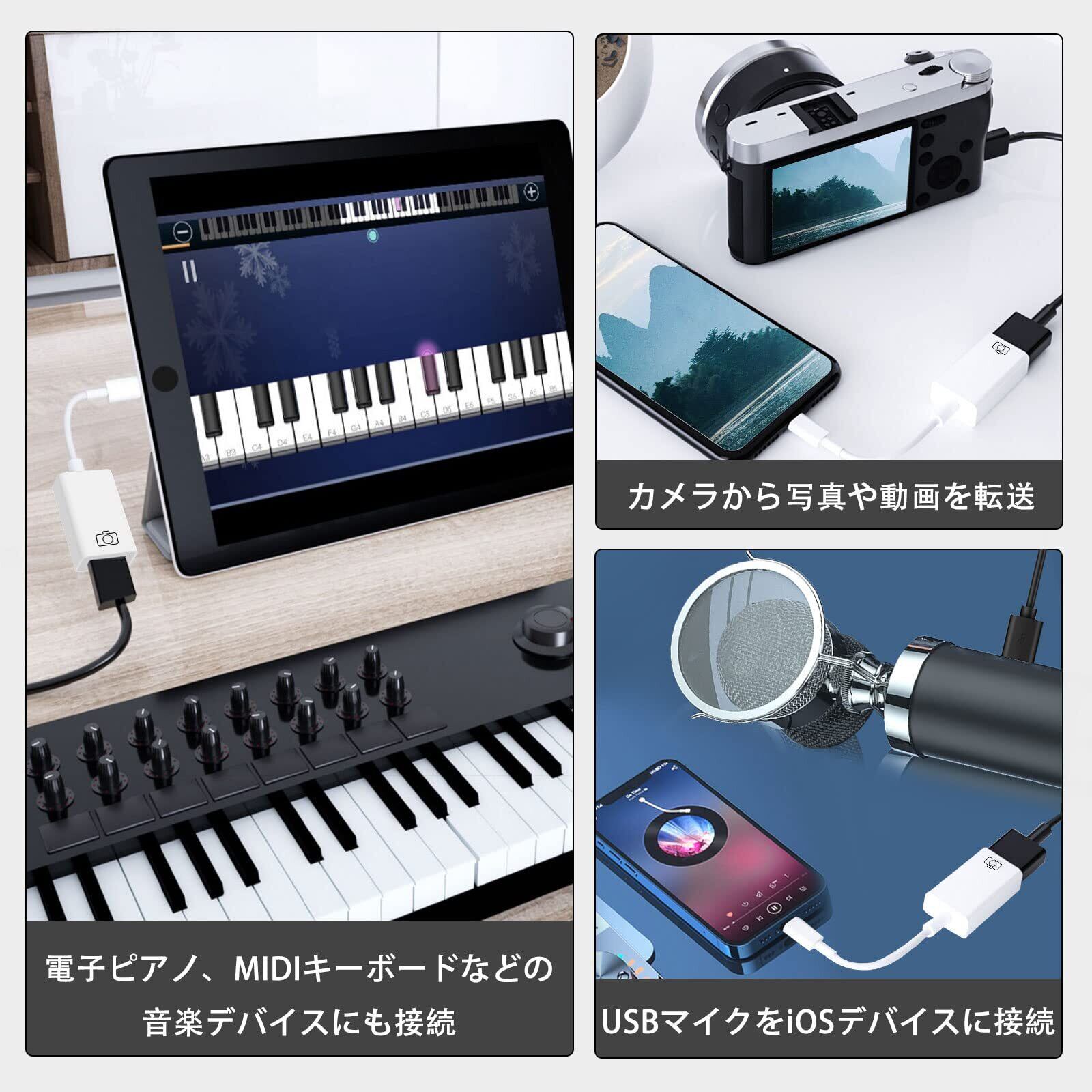 【ニューモデル】Apple MFi認証 iPhone usb 変換アダプタ OTGケーブル データ双方向伝送 写真/動画/音楽/iPad/カメラ/MIDI/キーボード/DAC/マイク/マウス/iOSに対応 iPhone Lightning-USBカメラアダプタ