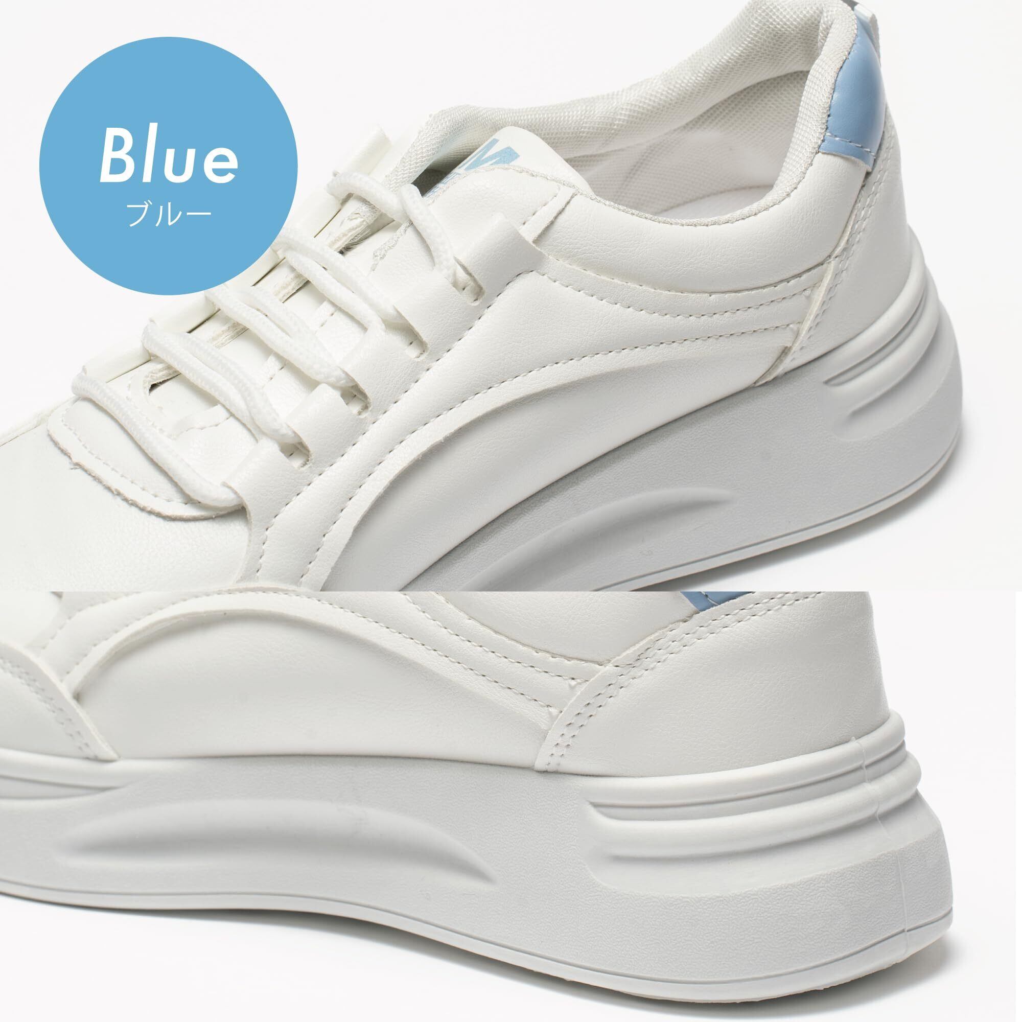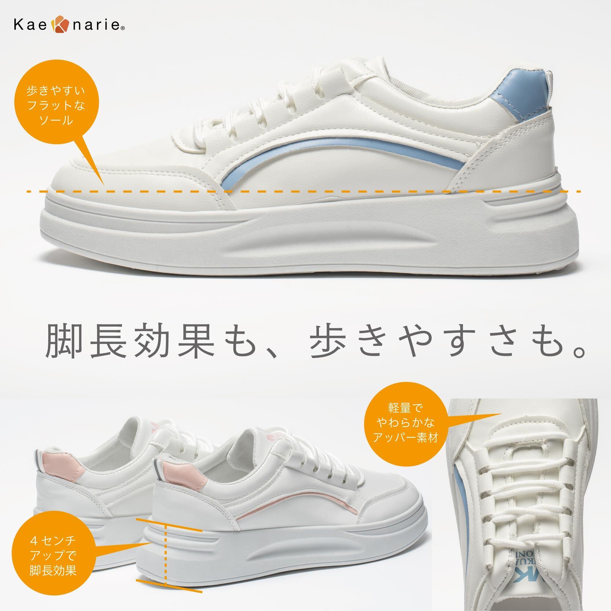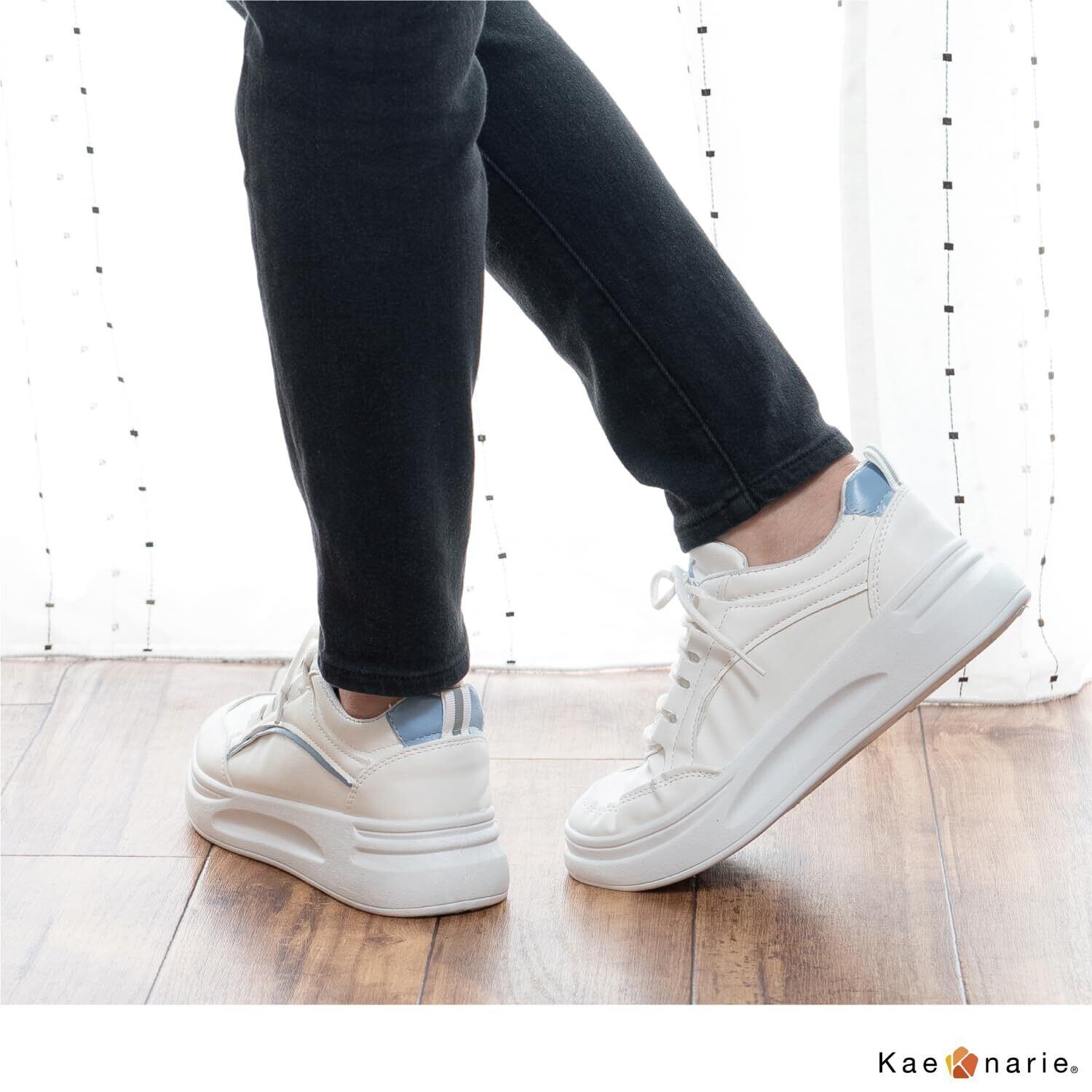 [Kaenarie] スニーカー 厚底 軽量 レディース 厚底シューズ ボリュームソール フラット 身長アップ PU 紐靴 ホワイト レースアップ 4cmUP