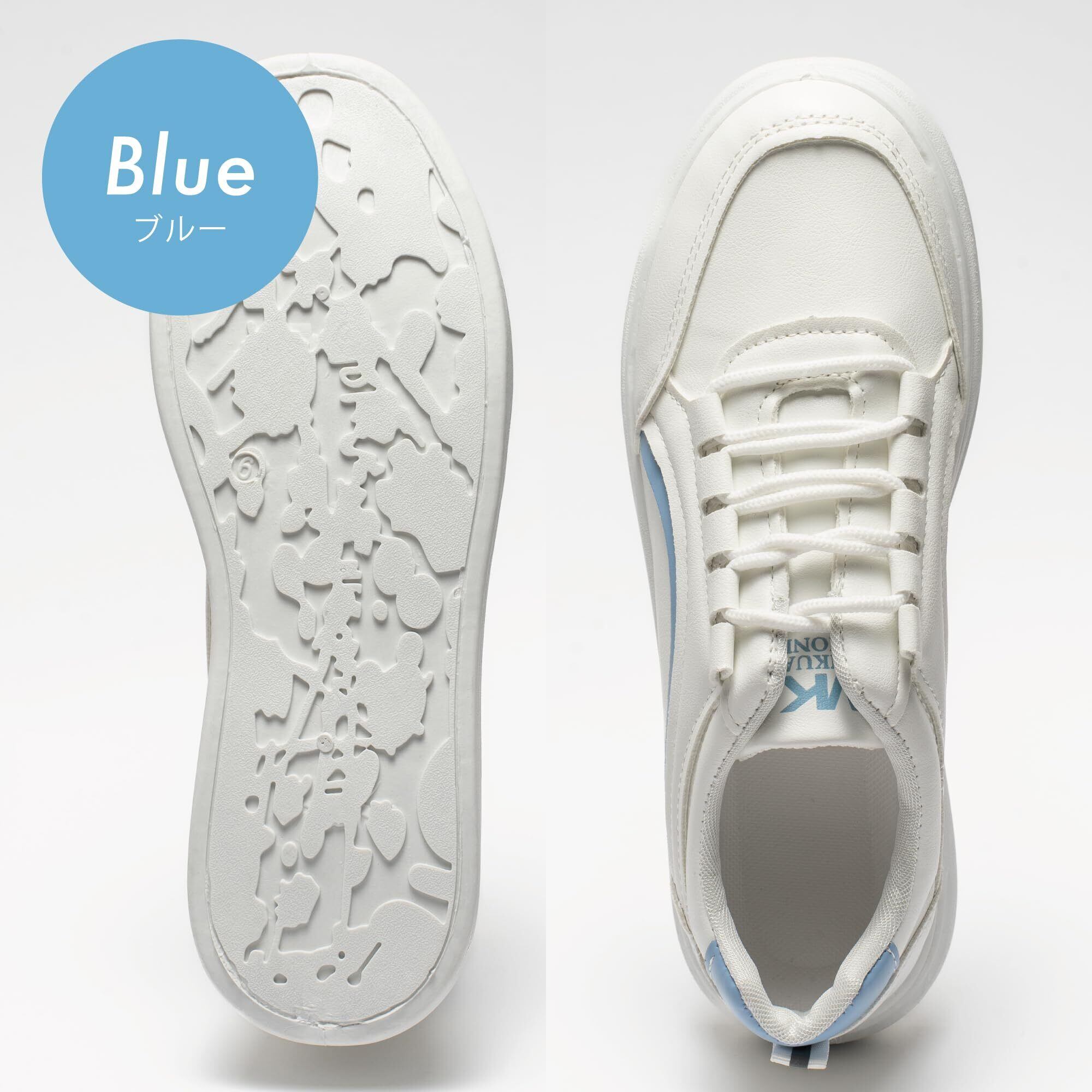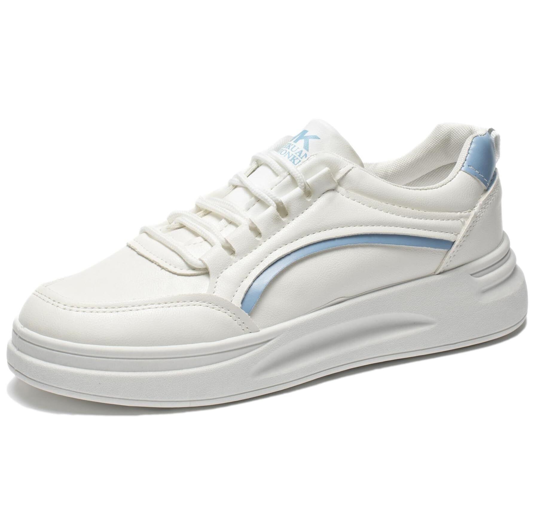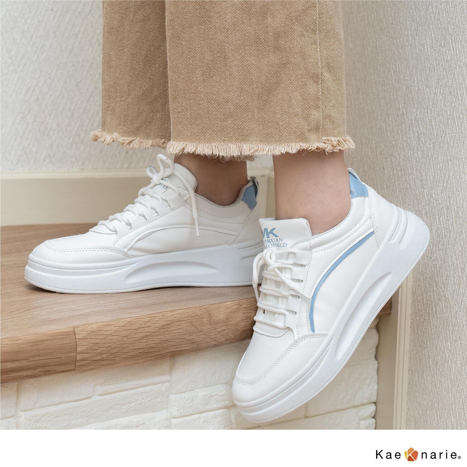 [Kaenarie] スニーカー 厚底 軽量 レディース 厚底シューズ ボリュームソール フラット 身長アップ PU 紐靴 ホワイト レースアップ 4cmUP