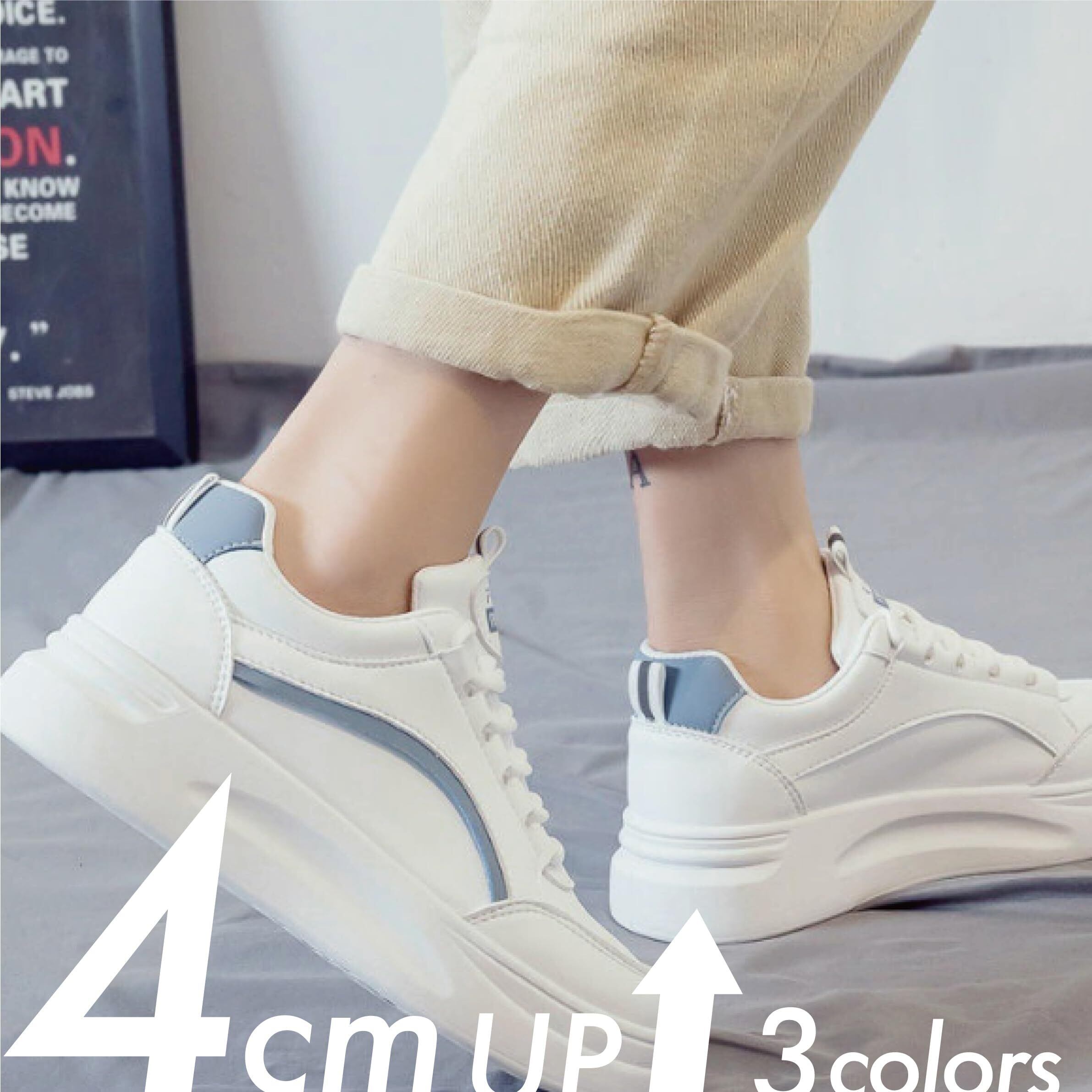 ボリュームのある厚底ソールでありながら、足元をすっきりと華奢に見せてくれるスニーカー4cmUPで、さりげなく自然なスタイルアップを演出します。