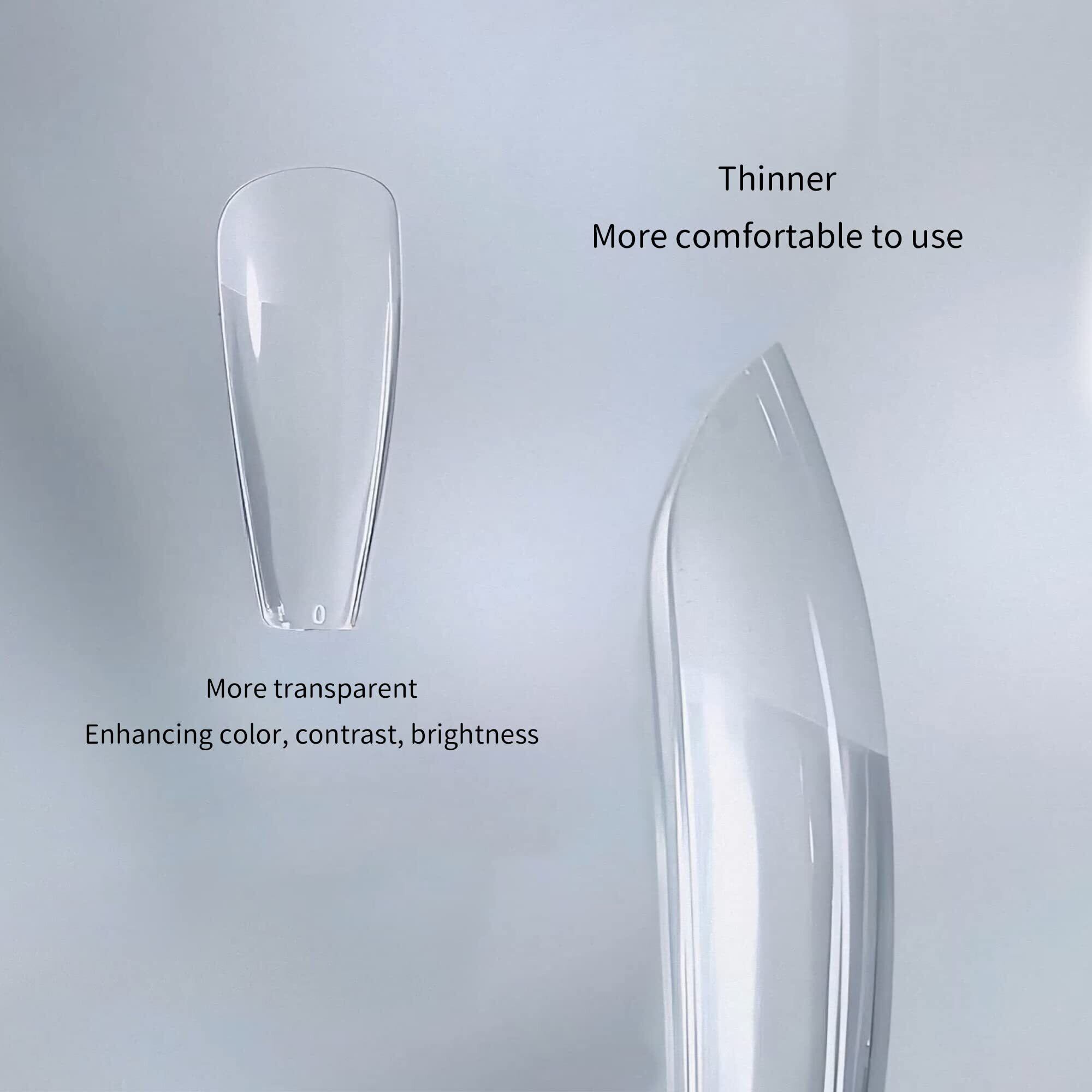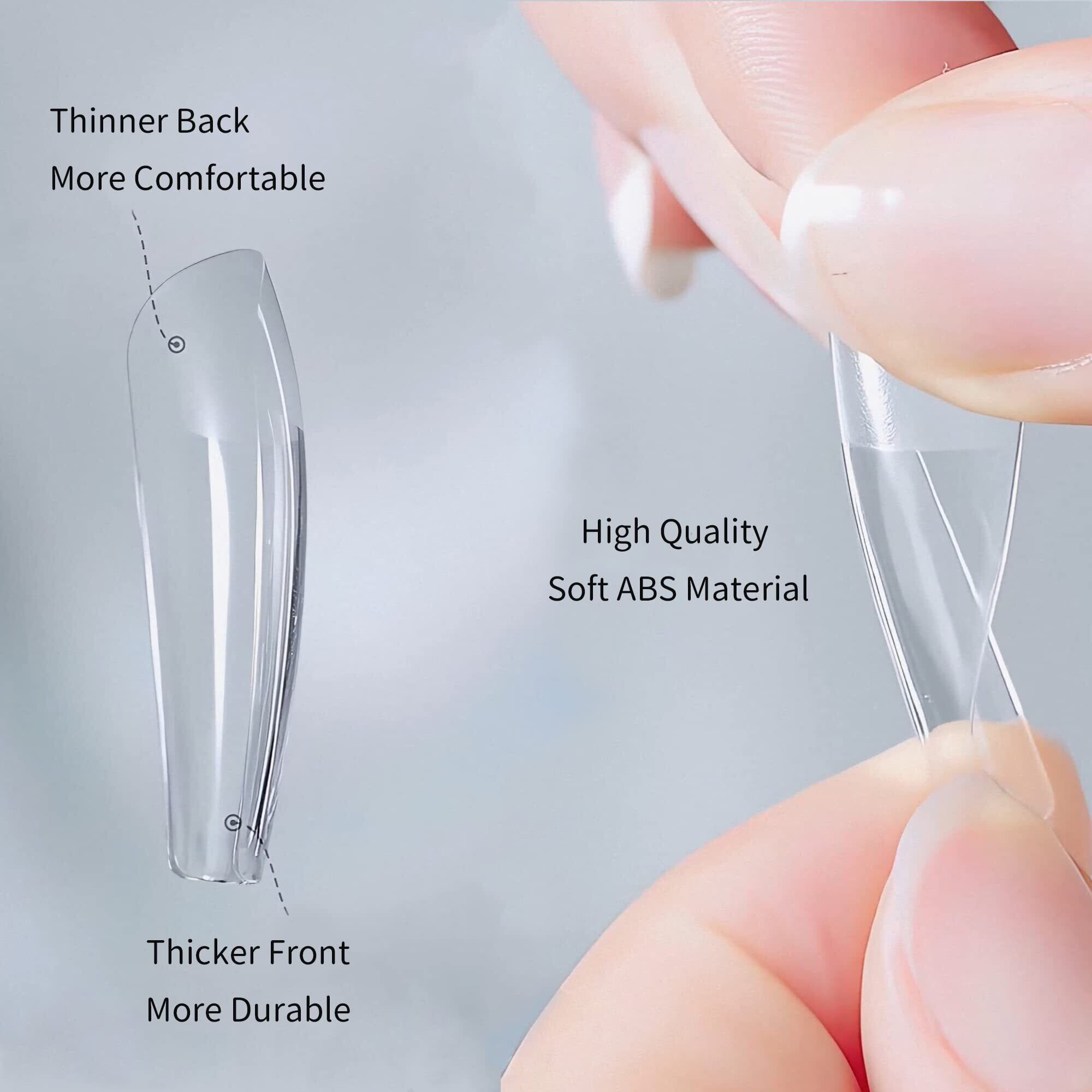 【フィット感・使いやすさ・自然な仕上がり】後端は超薄型で、自然に爪にフィットします。前端は強靭で、曲げても折れ目が残りません。フィットする部分はあらかじめ研磨され、より強固かつ便利に装着できます。