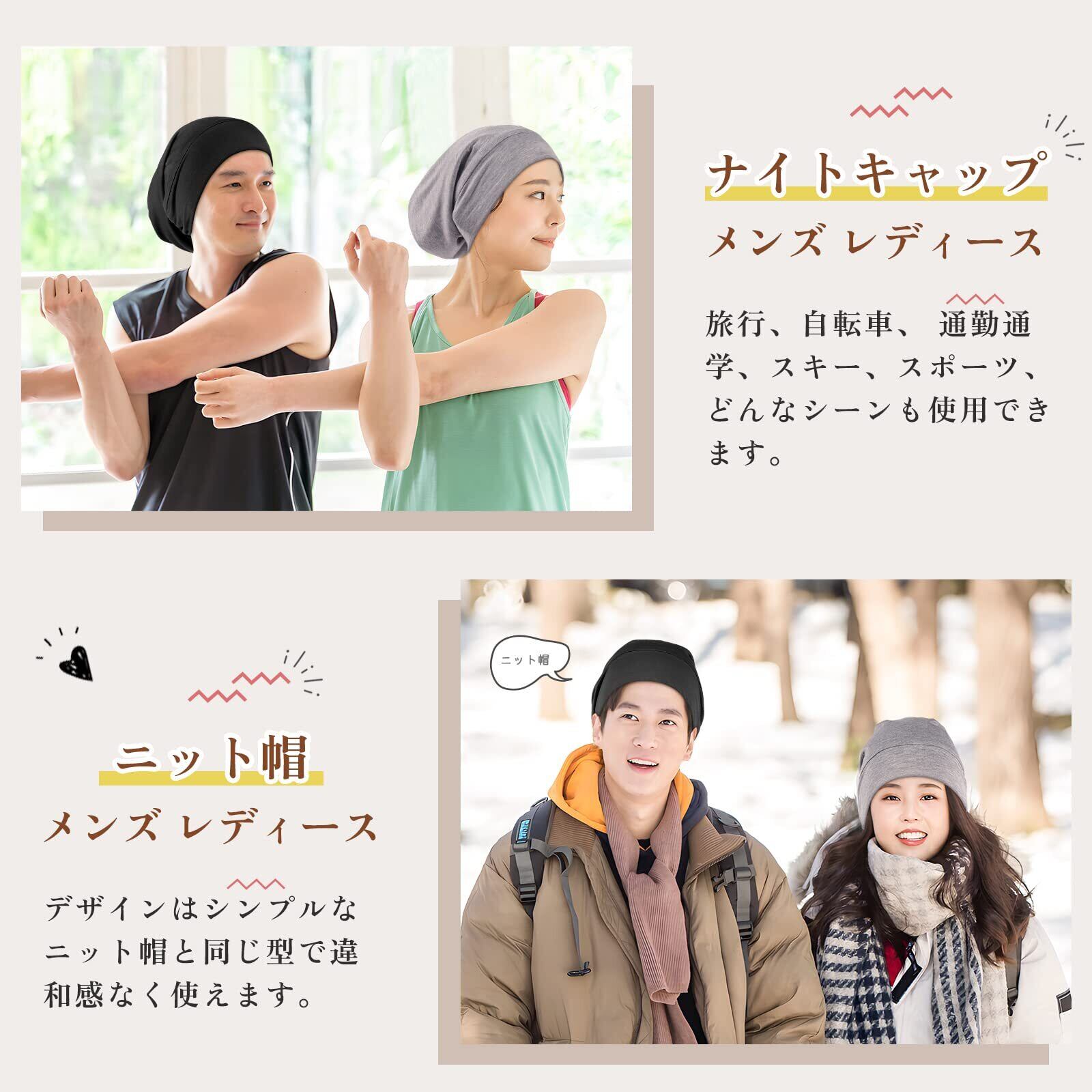 [LULUSILK] ナイトキャップ シルクナイトキャップ メンズ ニット帽子メンズ レディース 19匁6Aシルク ヘアキャップ テンセル 美髪 摩擦軽減 頭皮保湿 ツヤ髪 就寝用 サイズ調整可能 男女兼用