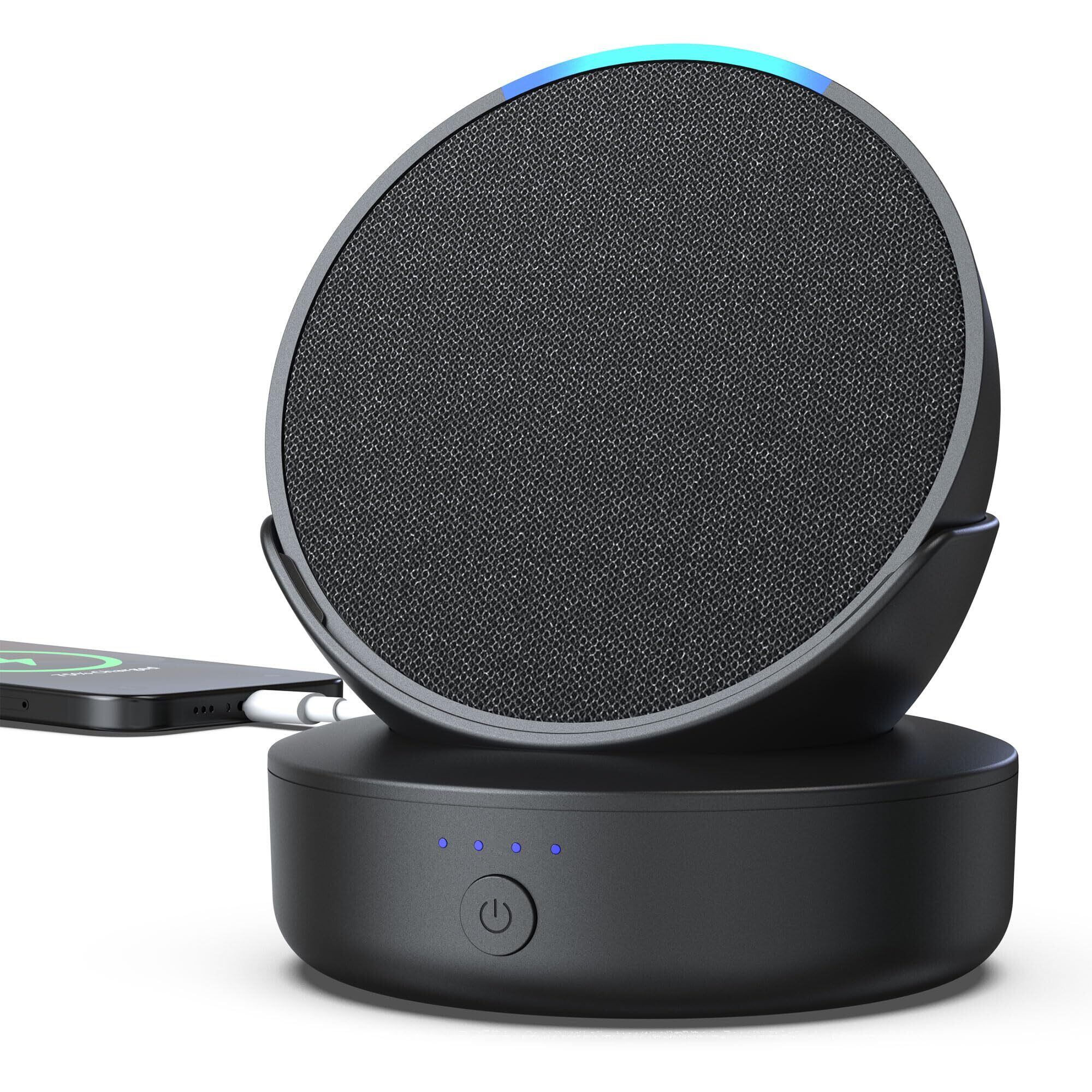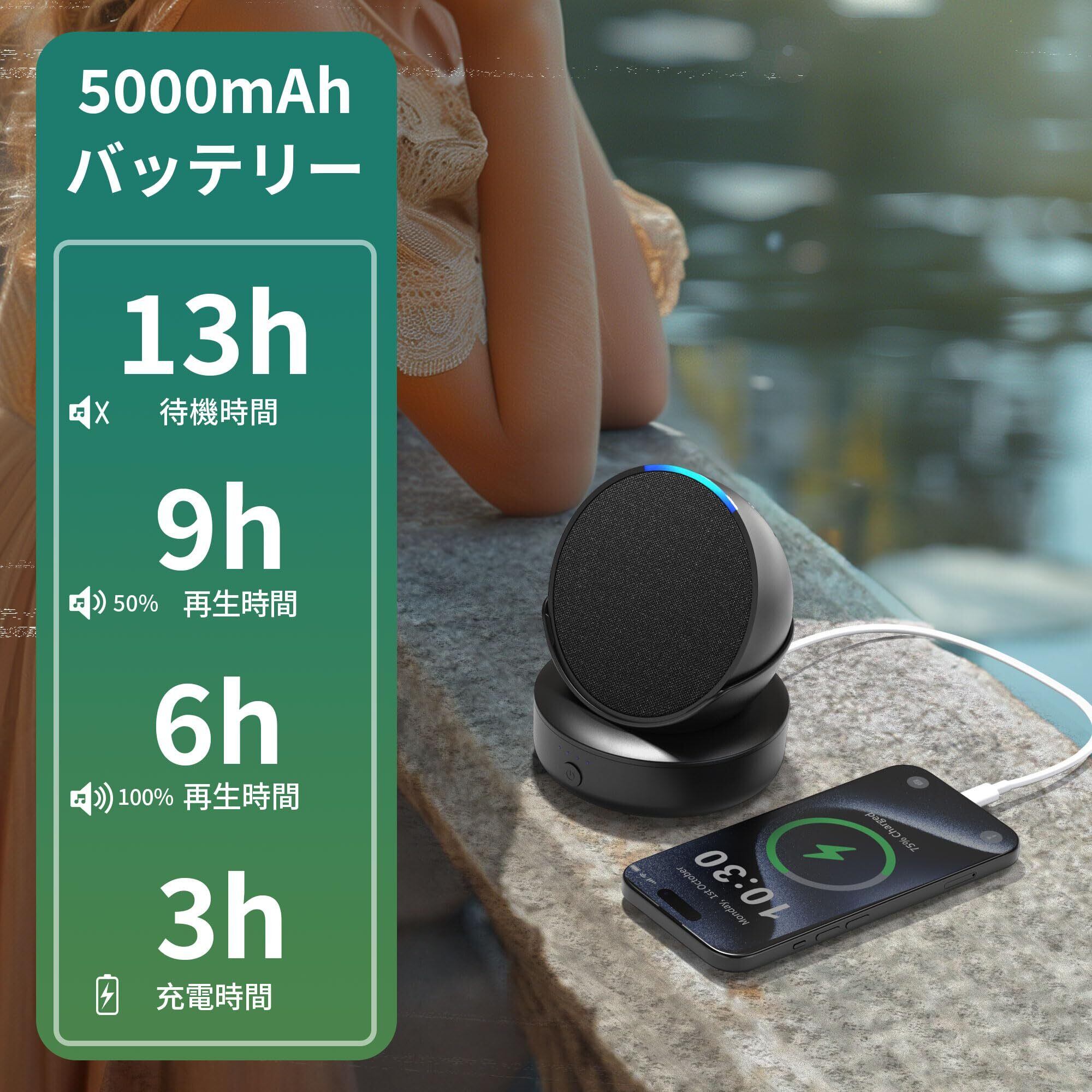PlusAcc Pop バッテリーベース Xiaoduスピーカー用モバイル防振安定性スピーカー電源ベース付き5000 mAh長時間待機ポータブル, ブラック