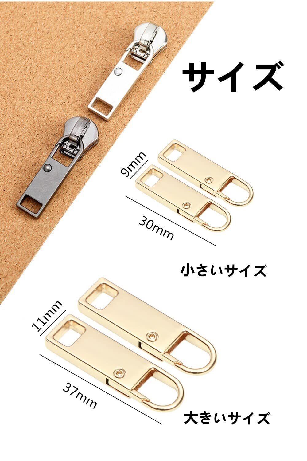 【サイズ】 大きいサイズ:37mm×11mm,小さいサイズ:30mm×9mm。ファスナーの引手の交換品です。ほとんどのかばんや服に適合します。