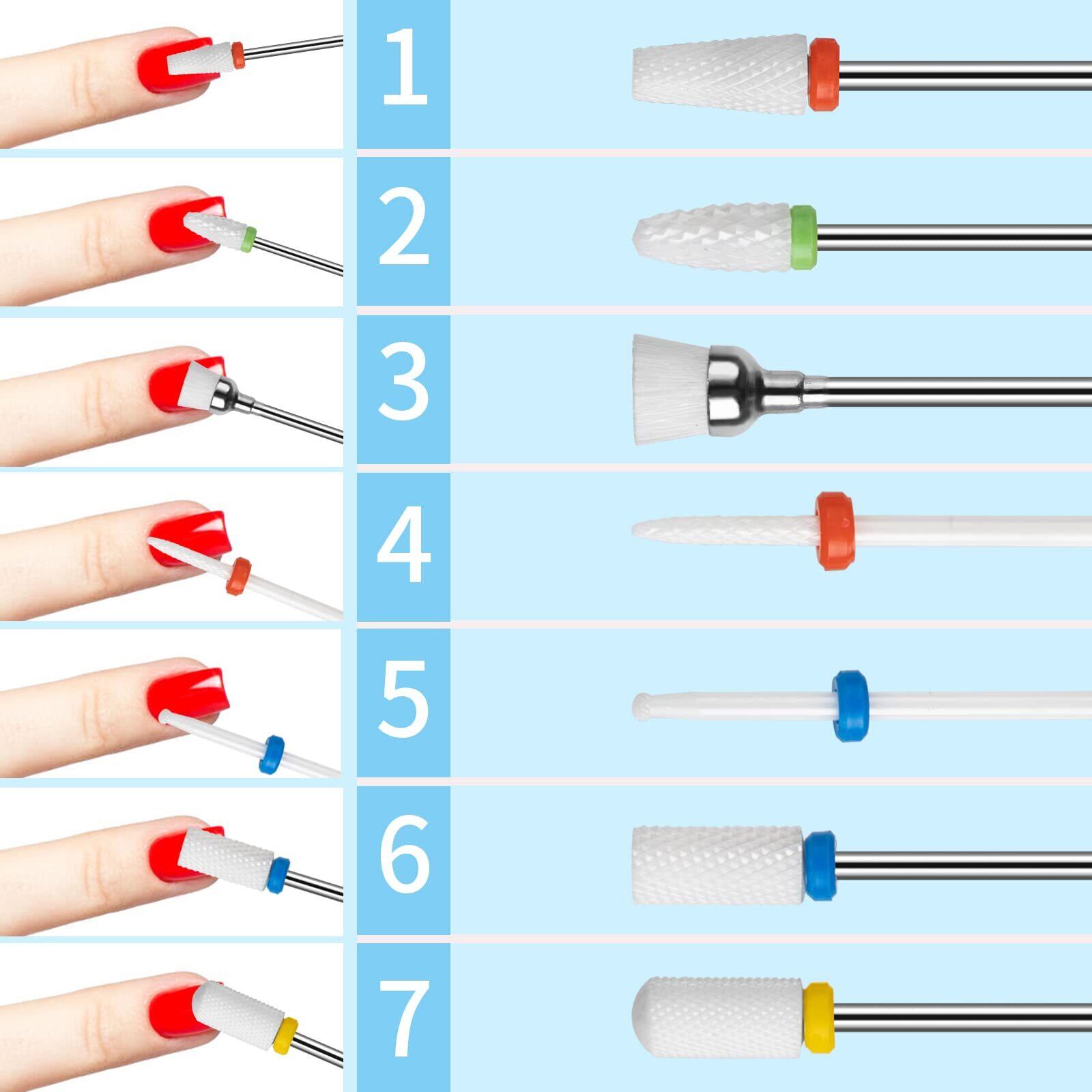 【2.34mm軸経】色んなの電動ネイルマシンに対応し、交換しやすく、小さなくぼみデザイン、摩擦や熱で少ないほこりを作成します。七枚の異なるネイルドリルを備え、できるだけお客様の異なる求めに応じることができます。さまざまなマニキュアやペディキュアを満たすことができます。*注意事項:市販のほとんどのマシンに装着できますが、稀に装着できない機種もございますので、ご注意下さい。