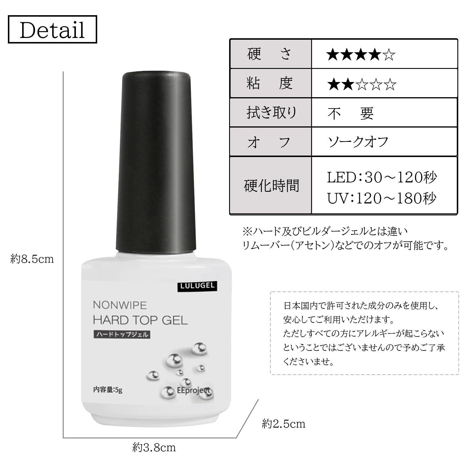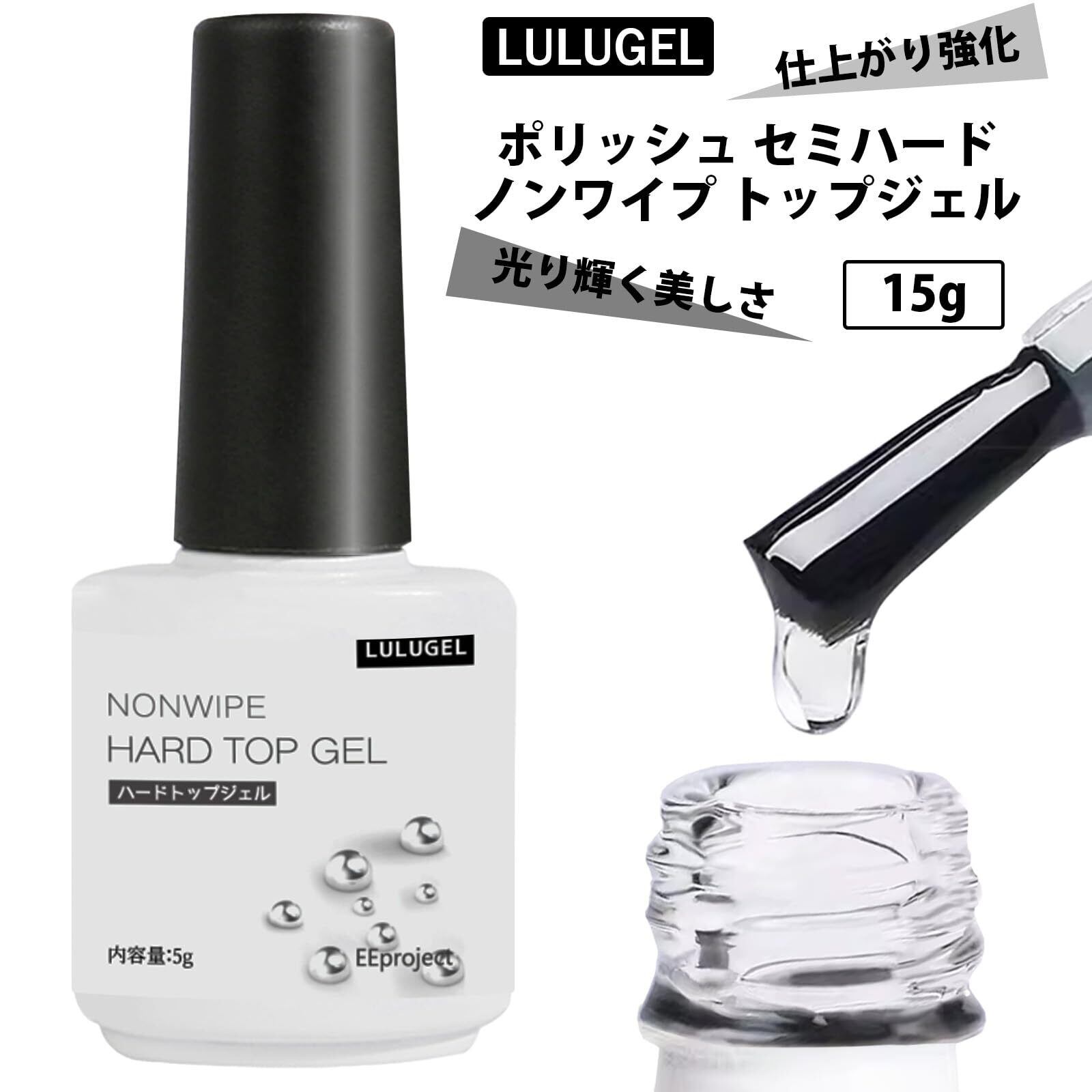LULUGEL ジェルネイル ハード トップコート 15g ノンワイプ ポリッシュ トップジェル トップ ジェル ネイル ハードジェル クリア nail ネイルジェル(ハードトップ 15g)