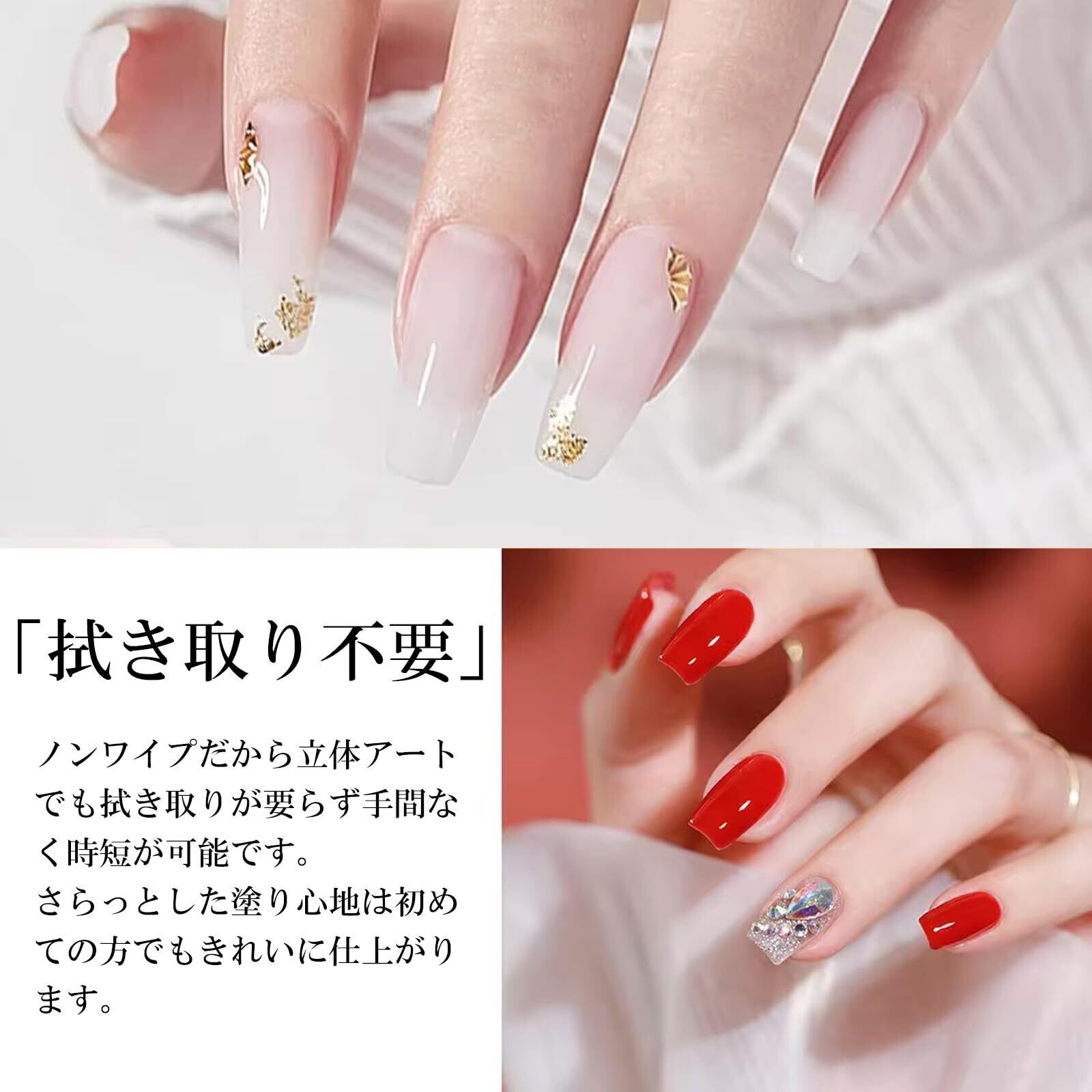 硬化後のベタベタした未硬化ジェルが出ないから、硬化後の拭き取り不要。 ワイプやクリーナーなど不要で経済的〇。