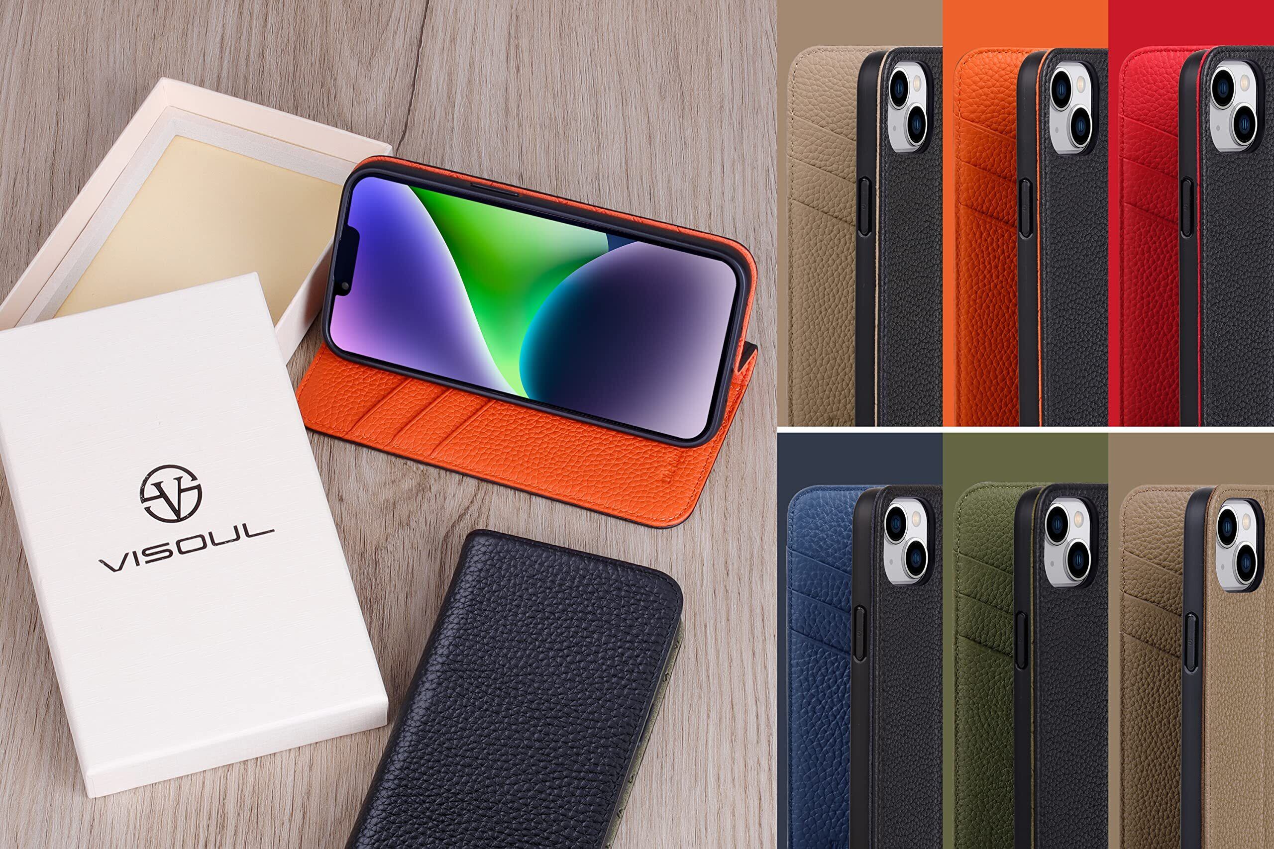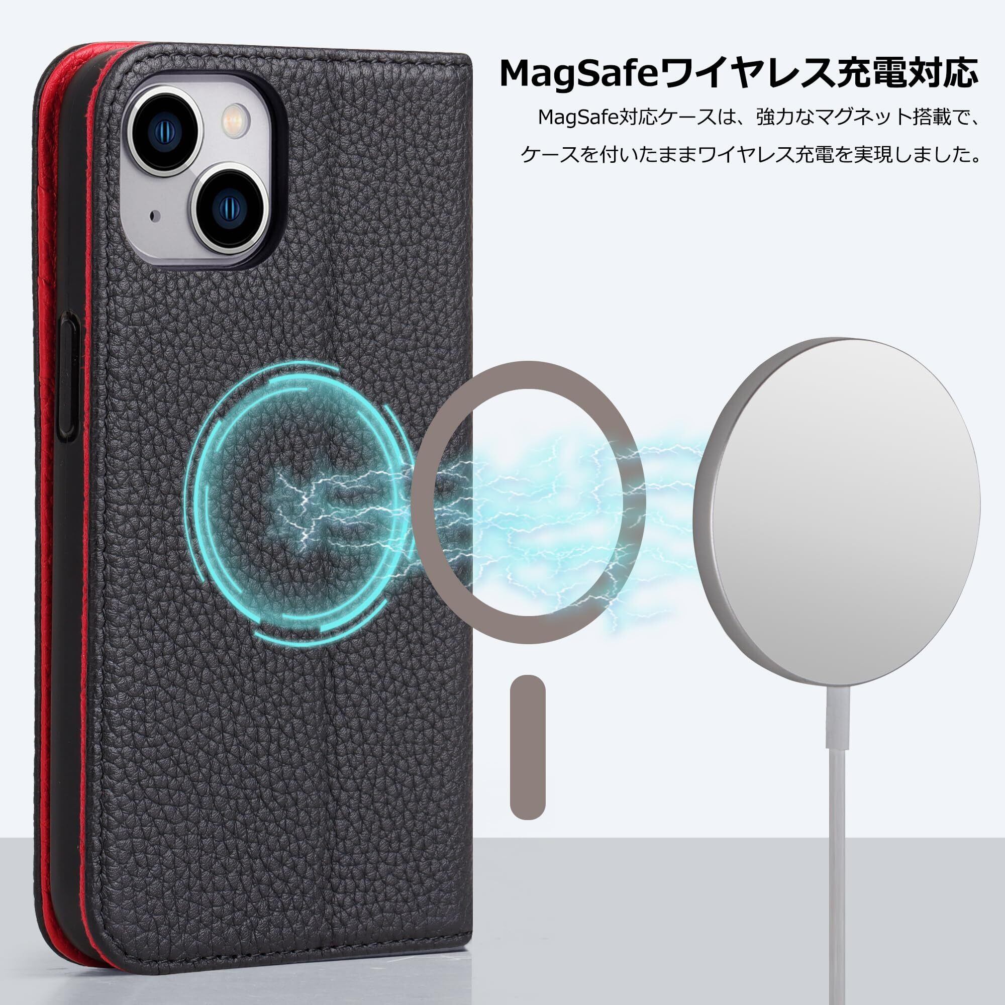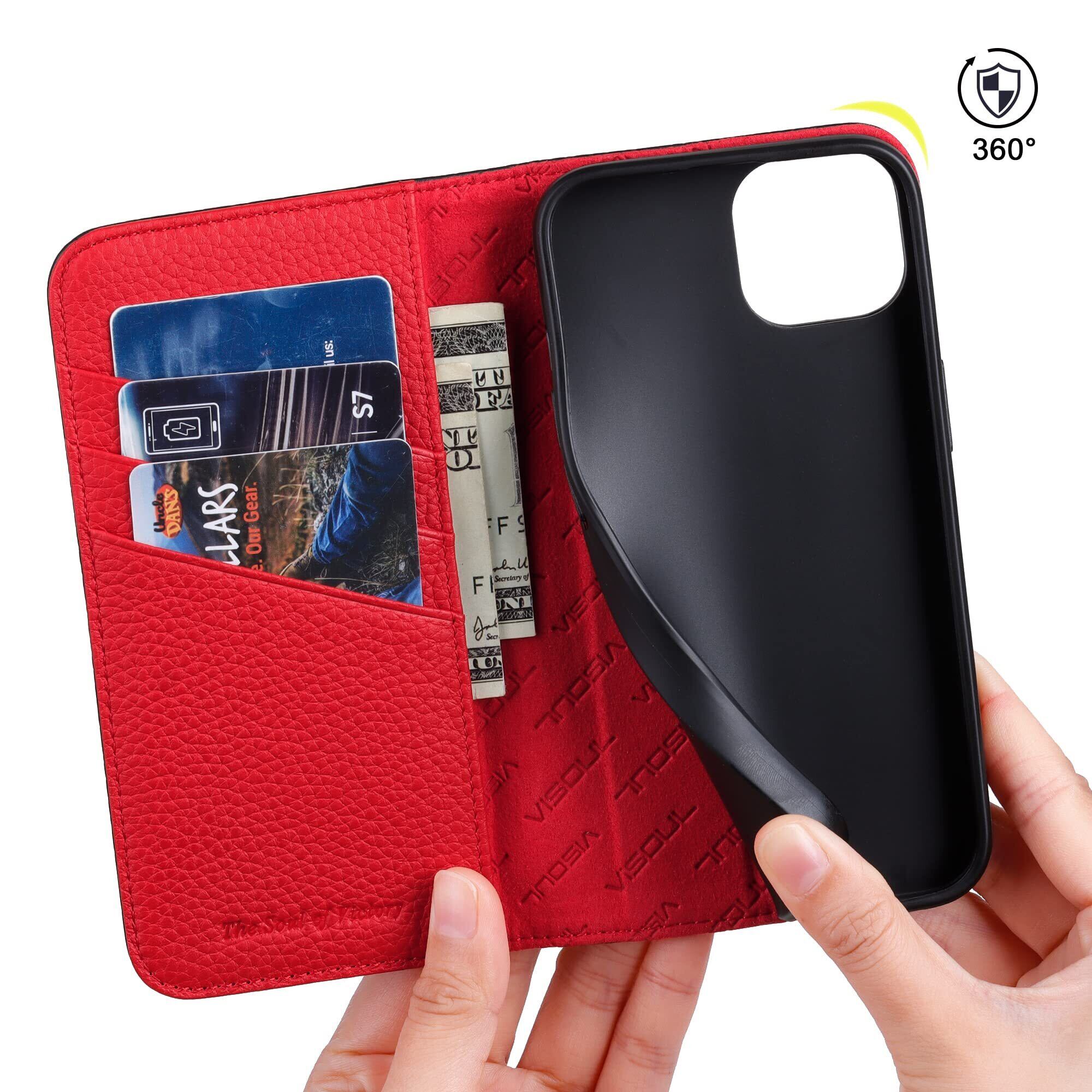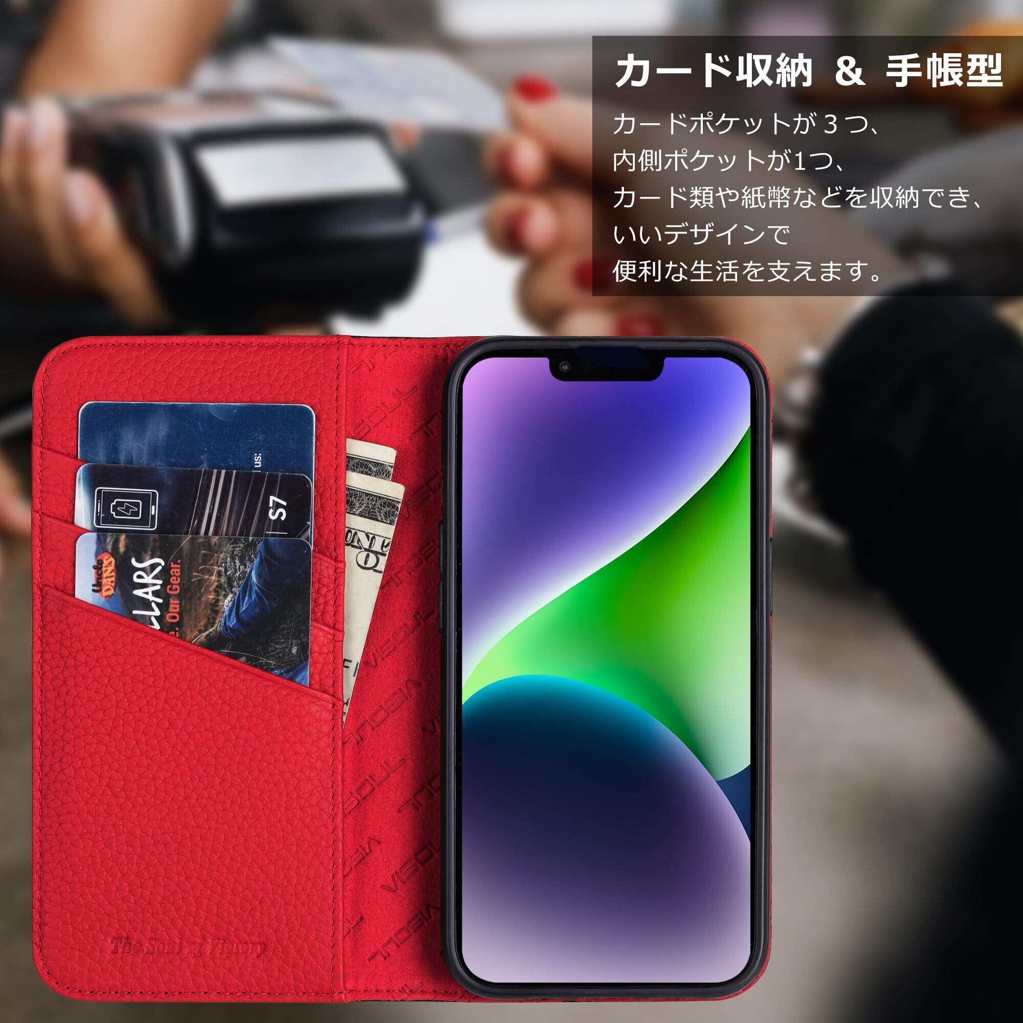 VISOUL iPhone15 対応 ケース 手帳型 本革 MagSafe対応 アイフォン15ケース レザースマホケース カード収納 携帯カバー 全面保護 マグネット式 柔軟なTPU素材 スタンド機能付き 6.1インチ アイホン 15 レッド