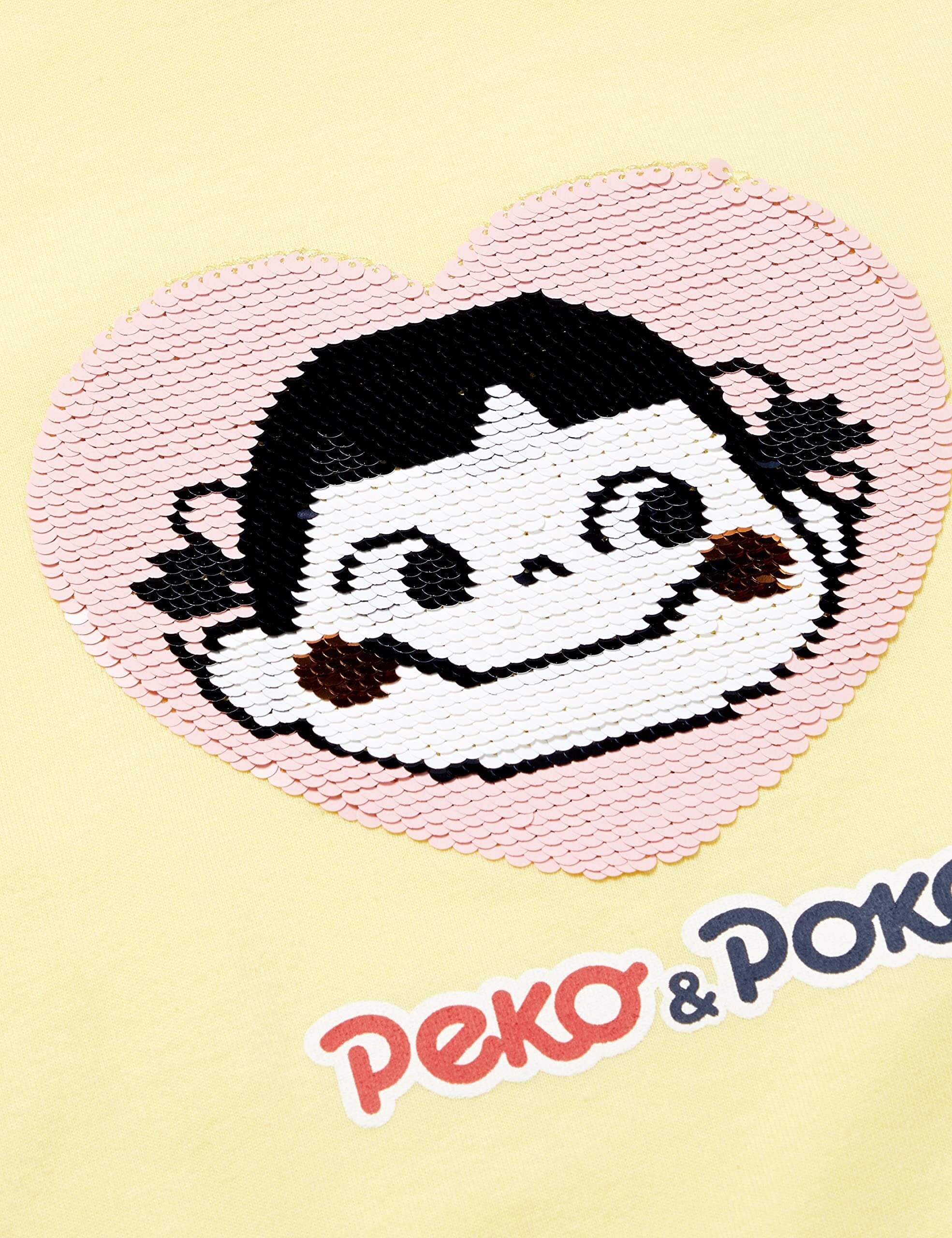ペコ&ポコのリバーシブルスパンコールTシャツです。ひっくり返すと【ペコ⇔ポコ】に絵柄が変わります。