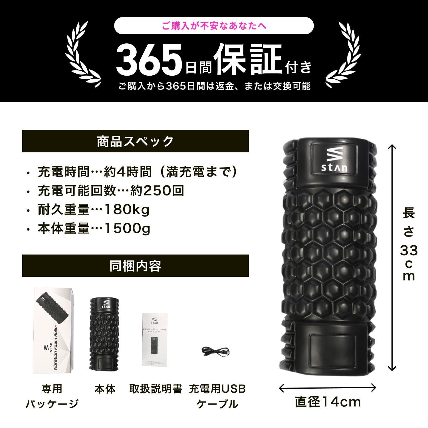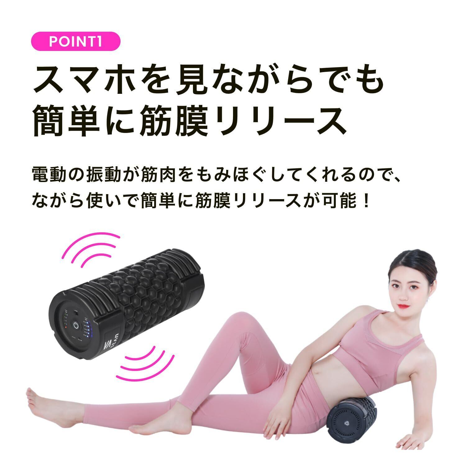 stan フォームローラー 電動 ストレッチ ポール 振動 筋膜リリース トリガーポイント USB【肌に優しいEVA素材】