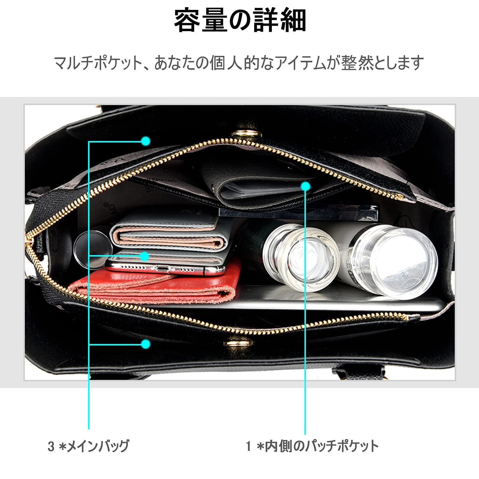 大容量構造:30x12.5x23 CM(長さ*幅*高さ)。 3 *大ポケット。 1 *内側のパッチポケット。タブレットPC、傘、香水、雑誌、ファイル、化粧品、サングラス、その他のビジネスや日用品を収納できる広々としたスペースがあり、アウトドアのニーズに対応します。