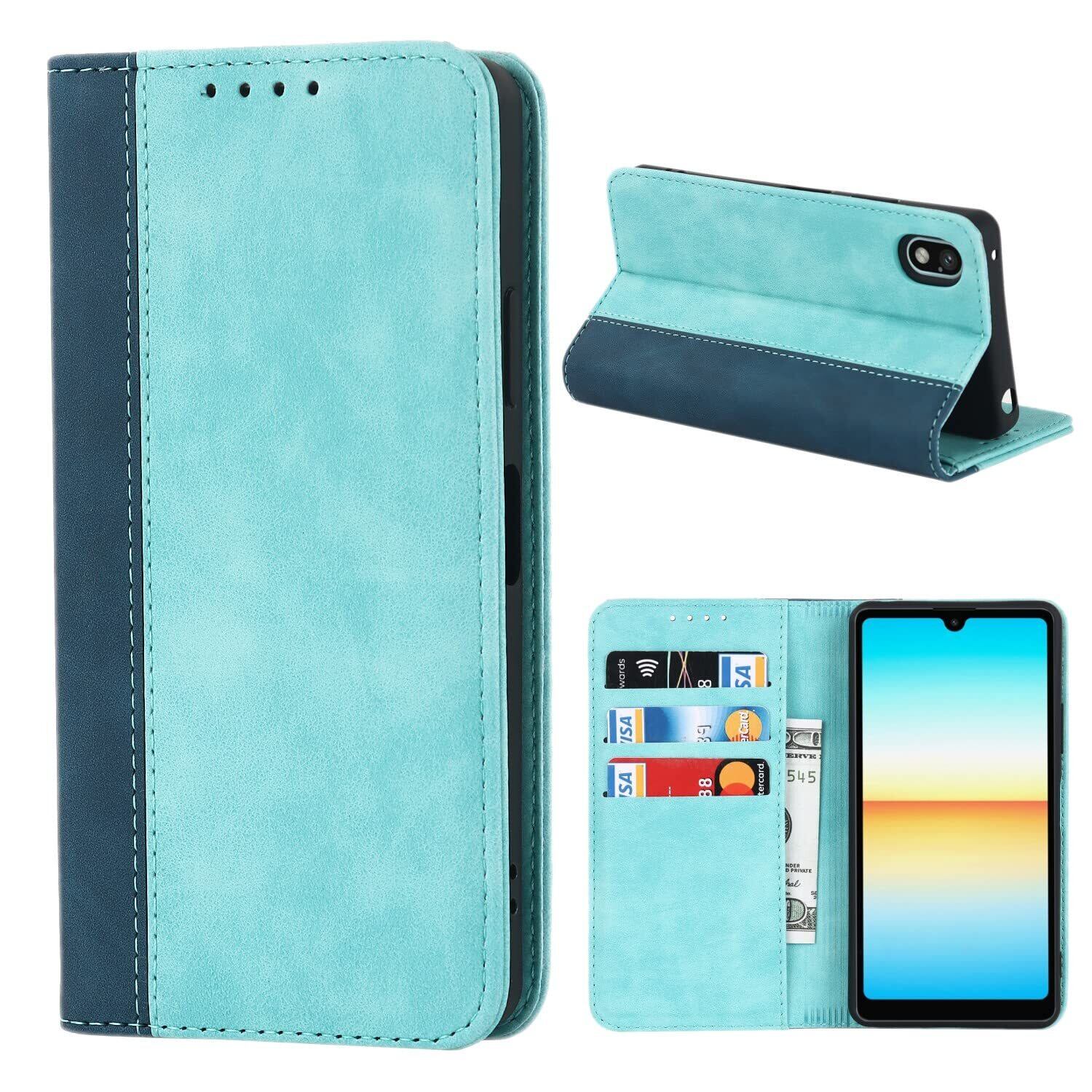 Xperia Ace III ケース 手帳型 対応 Sony Xperia Ace III SO-53C SOG08 ケース Sony aceiii Ace 3代 5.5'' 携帯カバー Pelanty 財布カード入れ 横置きスタンド機能 内蔵マグネット 合成皮革 TPU ソニー エクスペリアaceiii so-53c スマホケース 耐衝撃 2色組合せ スカイブルー X ネイビー
