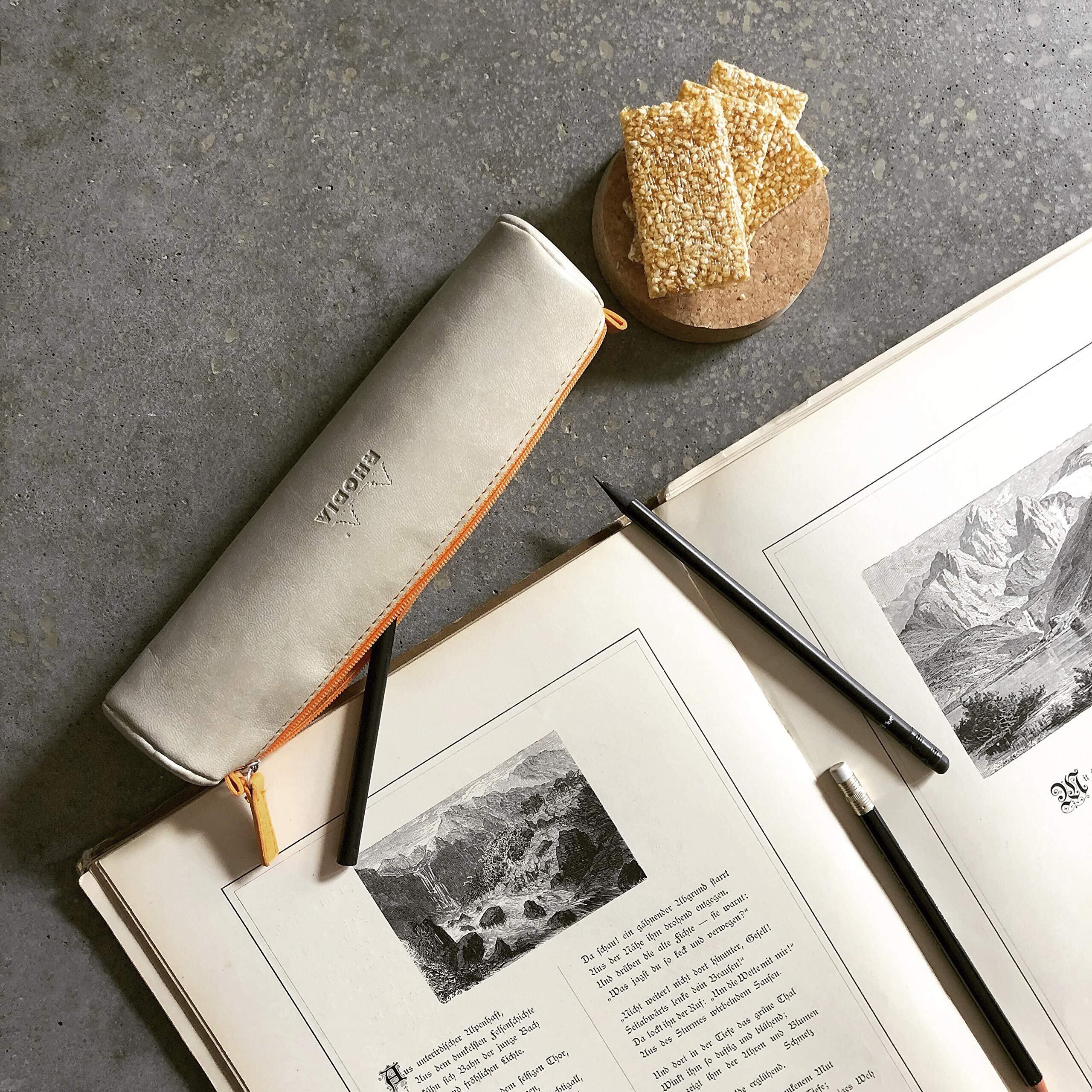 ロディアラマシリーズのアイコン的なイタリア製合皮を使用した円柱型のペンケースです。
