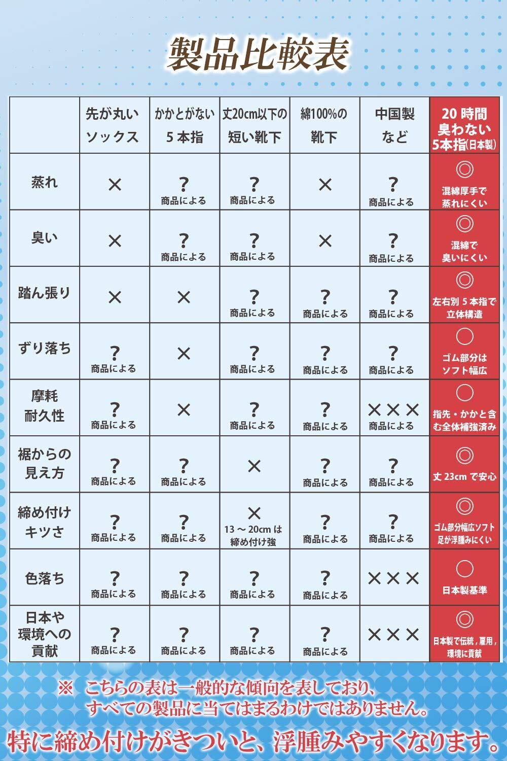 ✨ありがとうございます!2019年1月~'s Choice取得✨※裏返したときに足の指付け根部分にある糸は、ほどけ防止のため長めにカットしております。この長さがありますとお客様個人個人の指の太さなどにもある程度対応ができますが、短いとほどけたりほつれたり致します。製造不備ではございませんので、ご確認をお願いいたします。【本当に防臭したい人のための5本指。抗菌・防臭加工】綿混で蒸れにくく、さらっとした履き心地。(実は綿100%は乾きにくく蒸れやすい=ニオイが出やすい場合があります。)足指一本一本が清潔に保たれ消臭効果抜群。