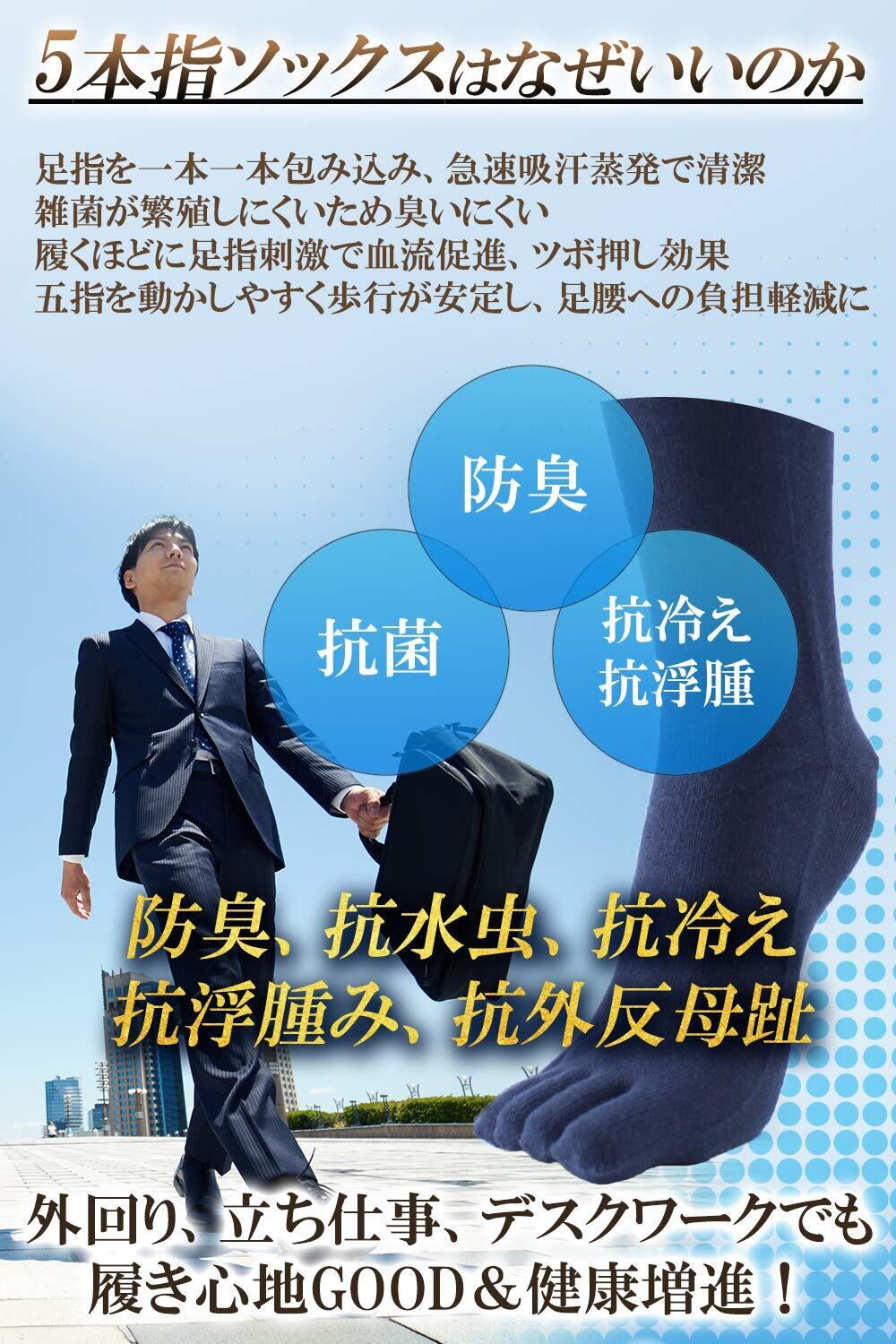 [オーセンティック] 【 5本指ソックス 】 日本製 20時間履いても臭くならない 超防臭 バリア 抗菌 高通気性 吸汗 メンズ ビジネスソックス 5足セット