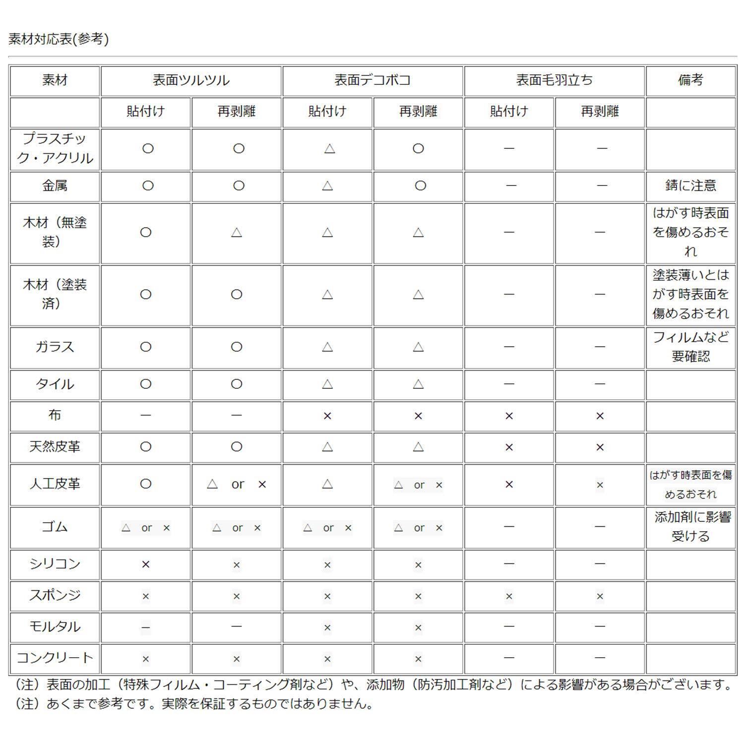 【ご注意】貼る対象の素材によっては、貼れなかったり、すぐに剥がれる場合があります。セロファンテープを、何度か貼ってはがせる場所にはご利用いただける場合が多いようです。