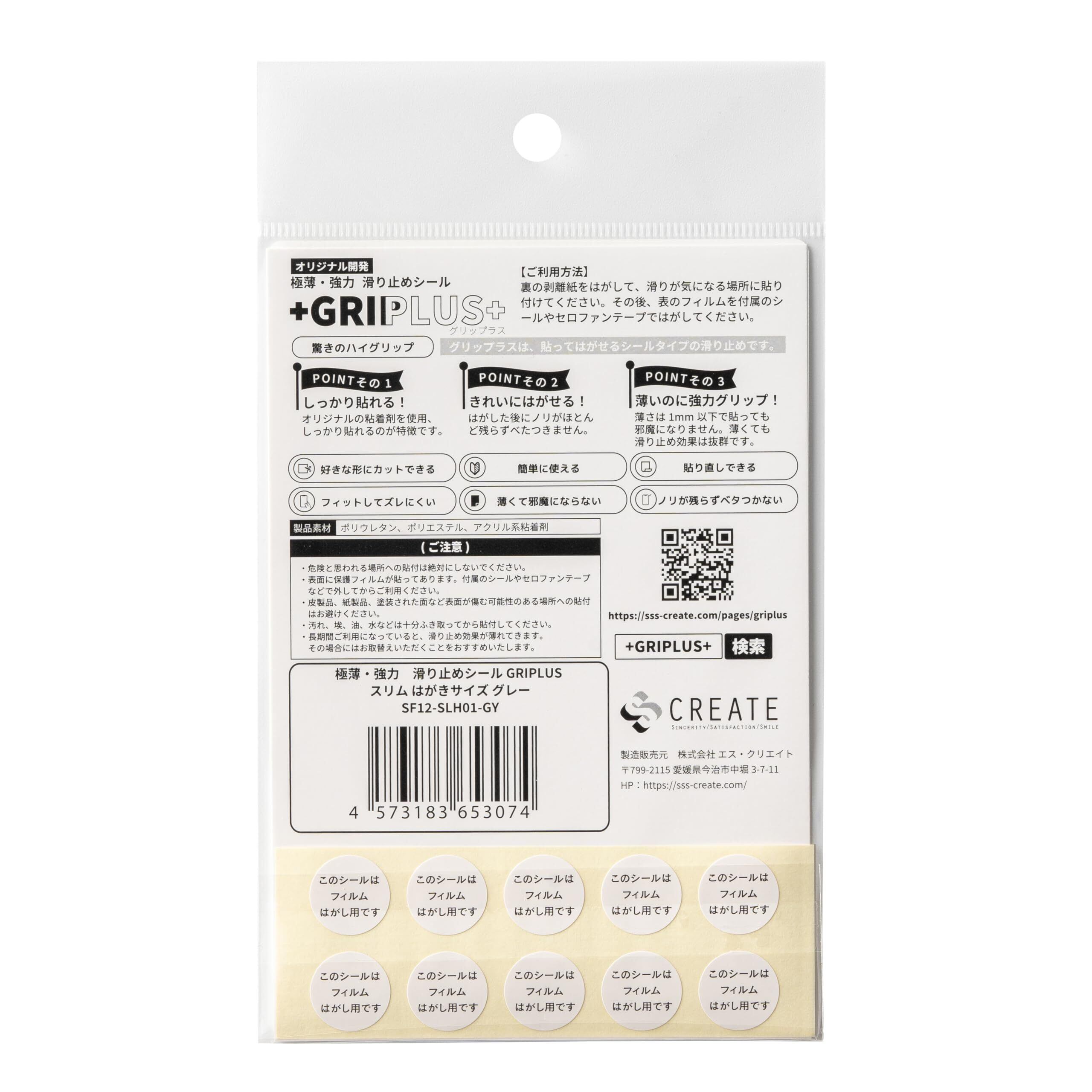 GRIPLUS(グリップラス) 極薄・強力 滑り止めシール スリム はがきサイズ 1 グレー