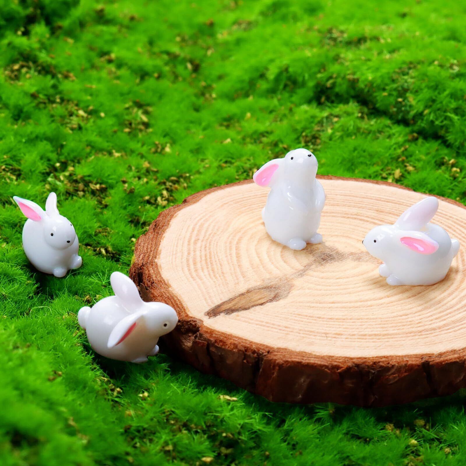 Exasinine ミニラビット イースターバニー ミニチュアフィギュア 動物モデル 妖精の庭 ミニチュア 苔の風景 DIY テラリウム クラフト オーナメント ホームデコレーション用アクセサリー (ウサギ、20個パック)