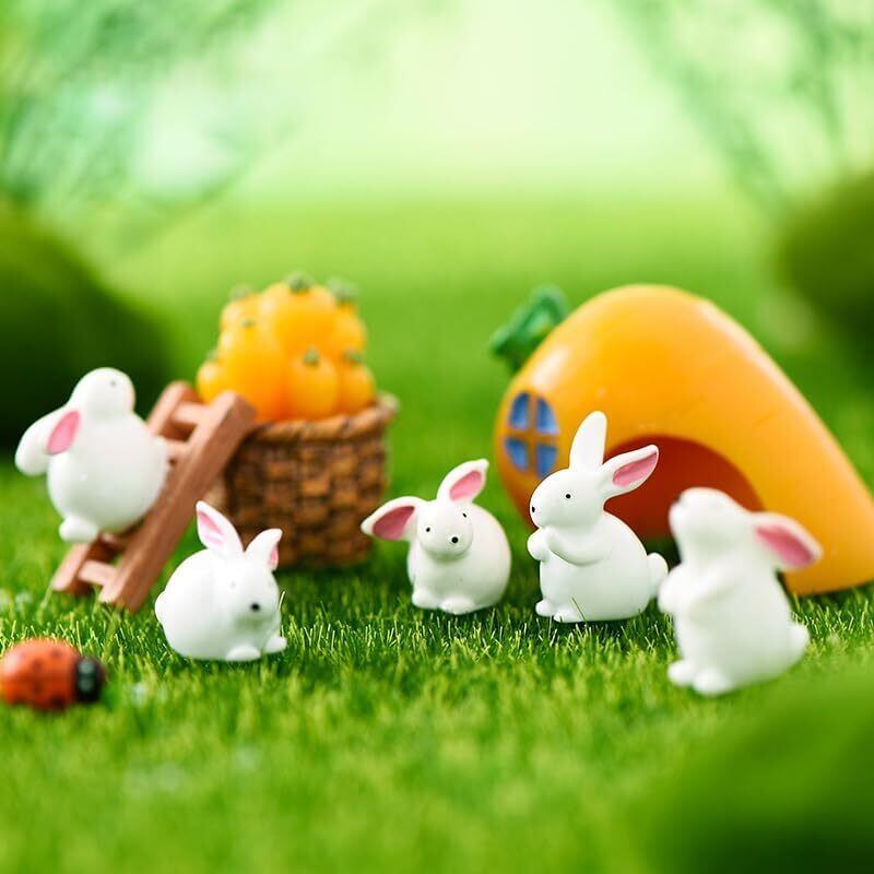 かわいいウサギは、ミニチュアガーデン、シャドーボックスシーン、多肉植物、その他さまざまな装飾フェンス鉢に最適です。