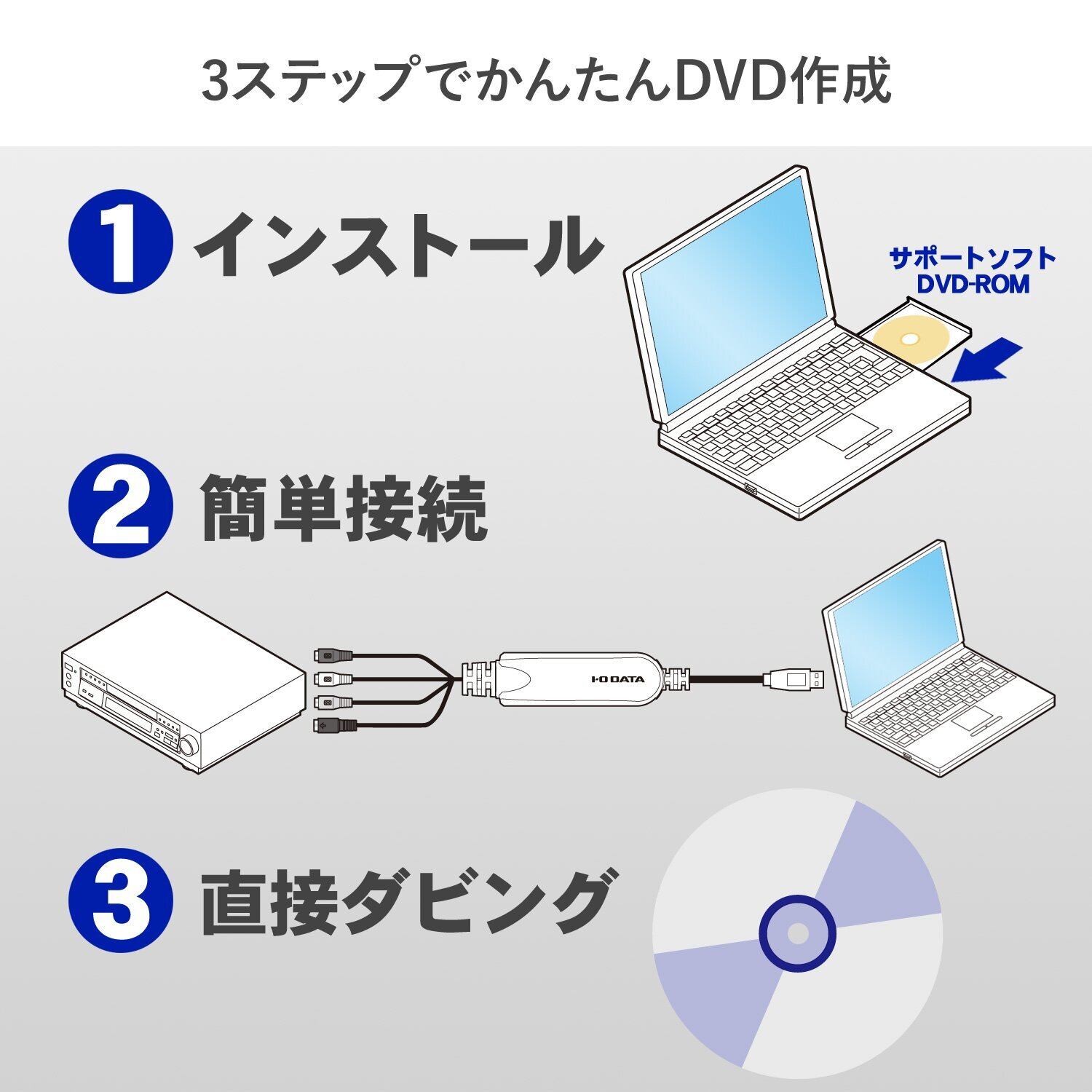 アイ・オー・データ ビデオ/VHS 8mm DVD/ブルーレイ ダビング パソコン取り込み ビデオキャプチャー 「アナレコ」 日本メーカー GV-USB2/HQ