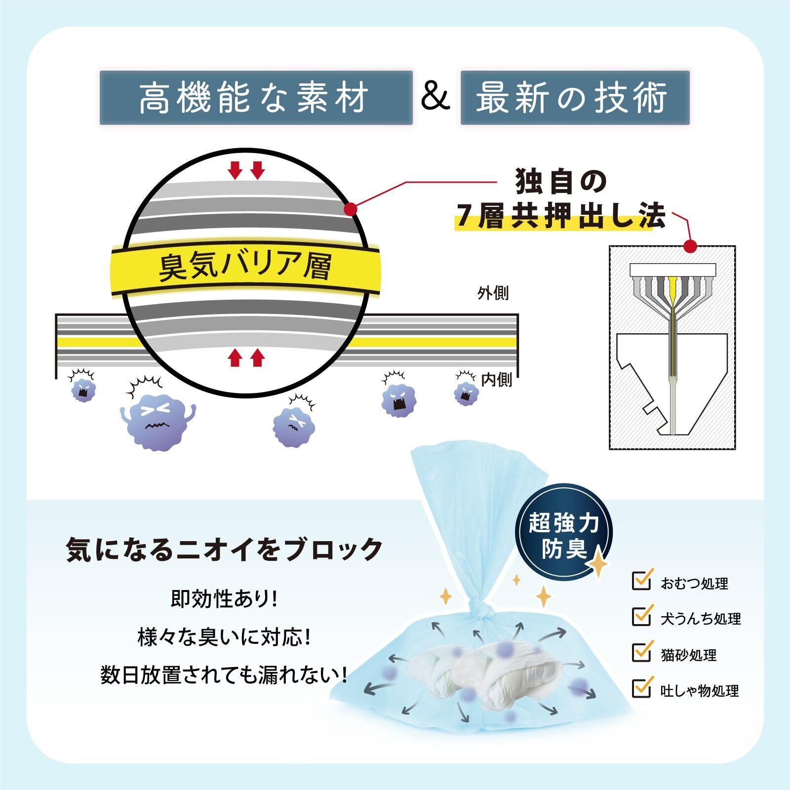 【驚異の脱臭効果】収容物からの臭気の透過を抑制するバリア層を有し、数日放置されても嫌なニオイが漏れません。子供のオムツ処理やペットの汚物始末など、様々なシーンで大活躍。