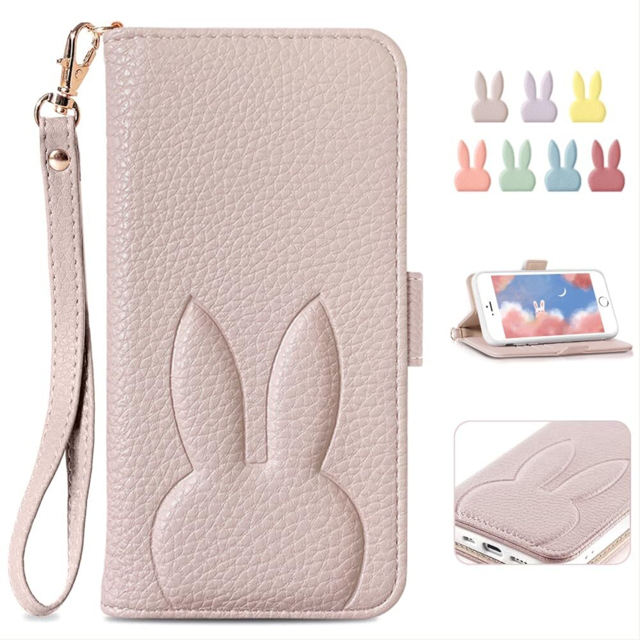 MAGICASE iPhoneSE 第2世代 iPhone8/7 /6/6sケース 手帳型 アイフォン8 スマホケース あいふぉん7 手帳カバー アイフォンSE 2022 保護ケース おしゃれ アイホン6s シンプル カードポケット 電話ケース 可愛い 財布型 兎 人気 携帯カバー レディース 女性 柔らかいTPUケース 上品 ストラップ 美しい アイホン8 かわいい 携