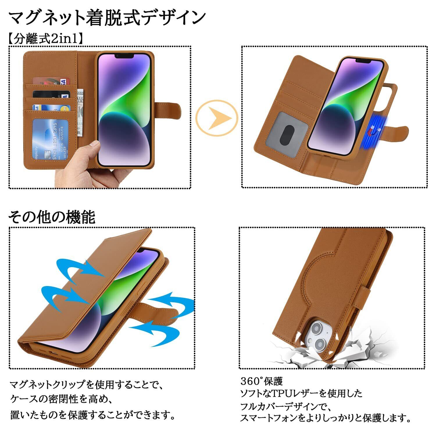 Havaya iPhone13ケース MagSafe対応 iPhone14ケース あいふぉん13ケース 手帳型 マグセーフ 【分離式2in1】 カード収納 ワイヤレス充電対応(アイフォン13 /あいふぉん13/いphone14/アイホン14 6.1インチ対応)-ブラウン