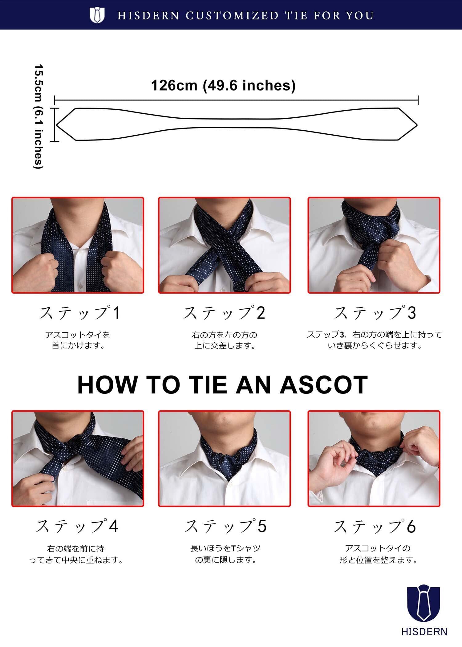 「歴史」16世紀末の装飾品から始まり、以前は皇室の貴族たちのお気に入りのアクセサリーでした。19世紀になると、この小さなネッカチーフは進化し、"アスコット(Ascot)"と呼ばれるようになりました。